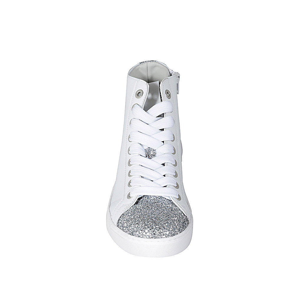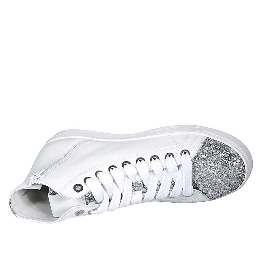 Woman's loafer with removable insole and elastic bands in black leather wedge heel 4