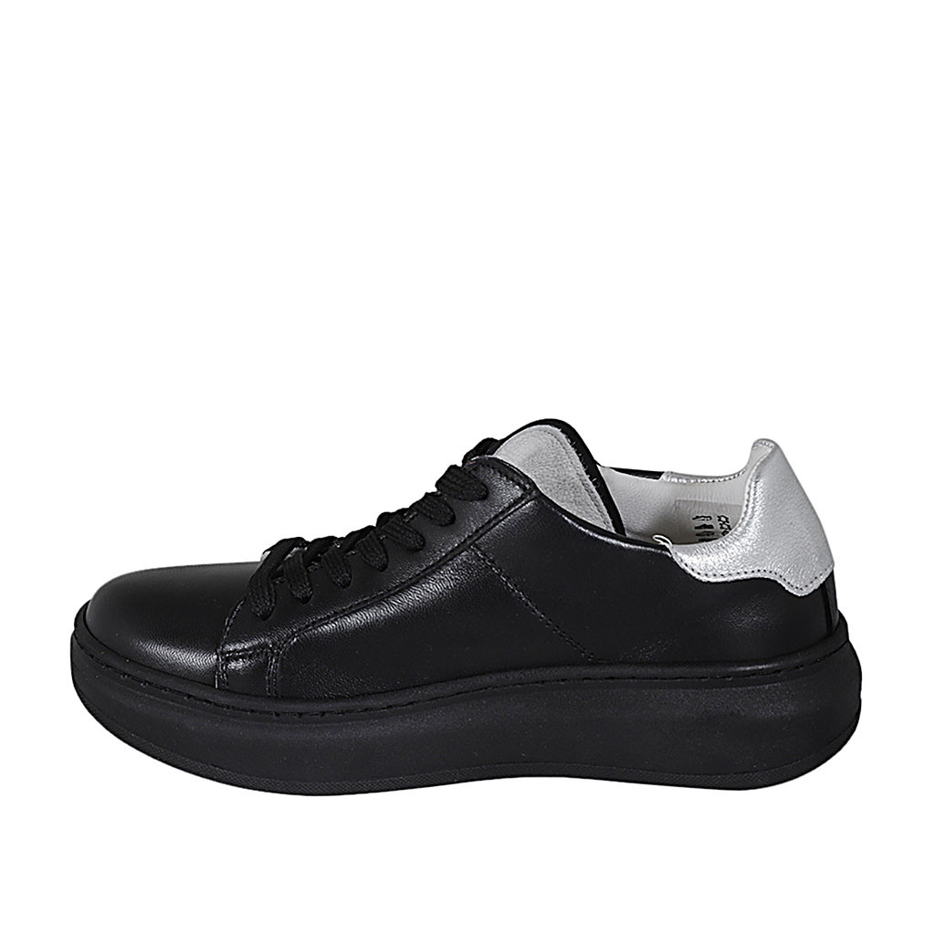 Woman's laced shoe with zipper and removable insole in black and silver leather wedge heel 3 - Available sizes:  33