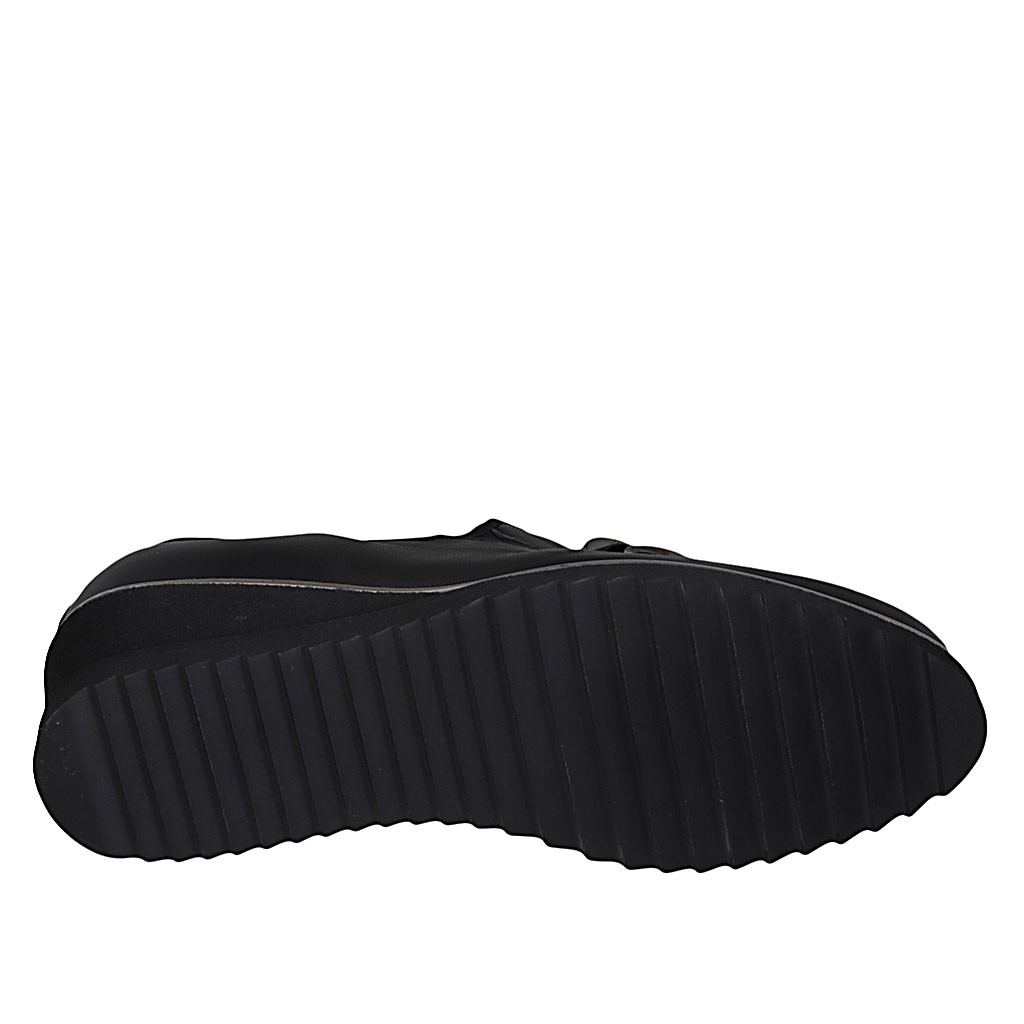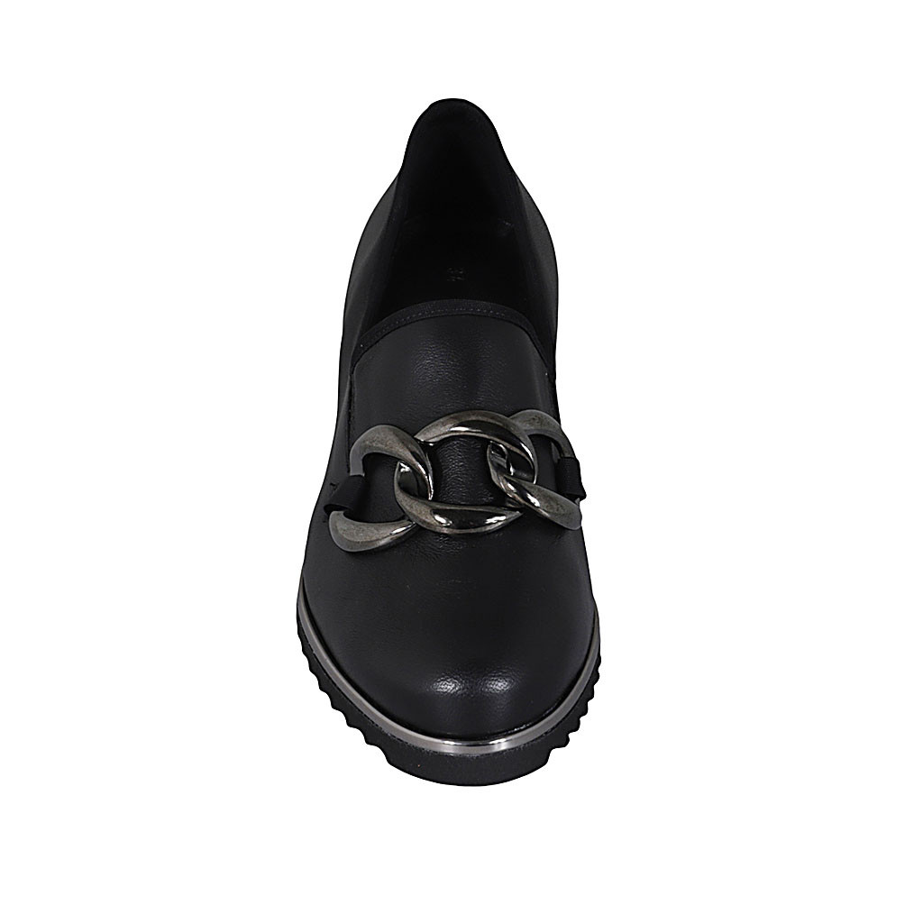 Woman's highfronted shoe in black leather with elastics and chain wedge heel 4 - Available sizes:  44
