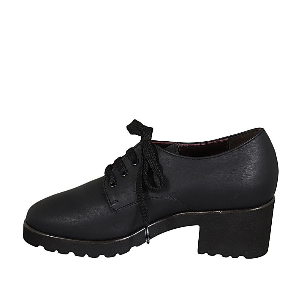 Woman's shoe in black leather with laces and removable insole heel 5 - Available sizes:  43
