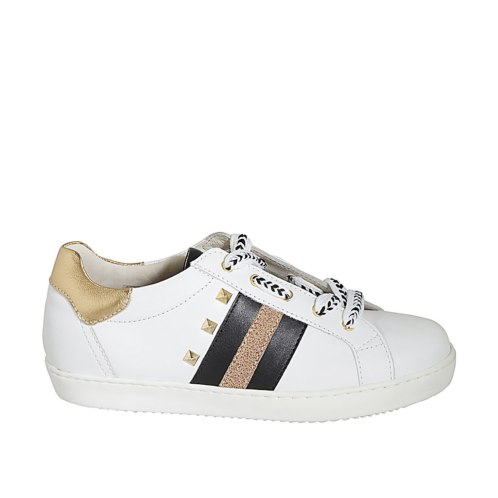 Woman's laced shoe with removable insole and zipper in white and silver laminated leather wedge...