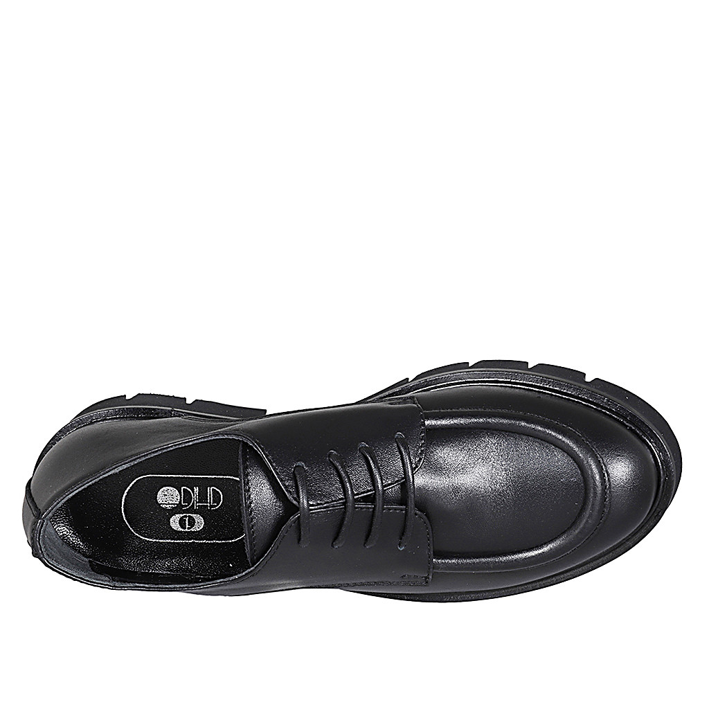 Woman's laced derby shoe in black leather with heel 3 - Available sizes:  32, 42, 43, 44, 47
