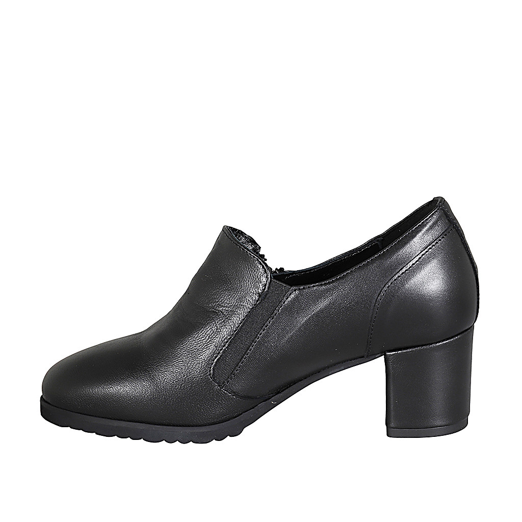 Woman's knee-high boot in black elastic material and leather with zipper heel 6