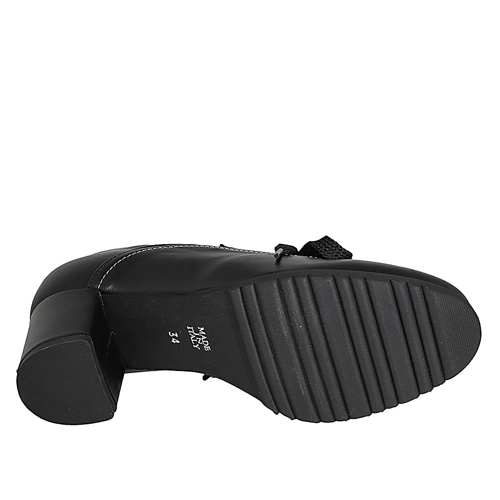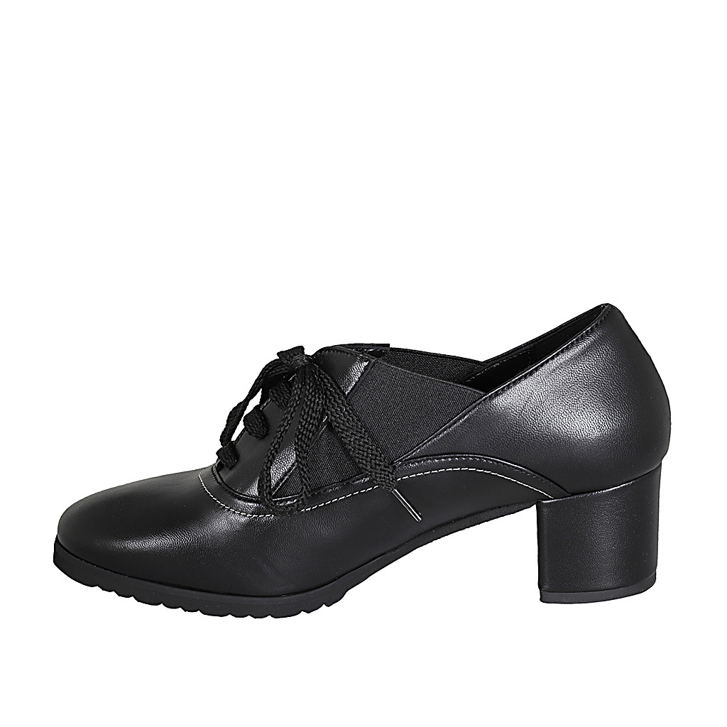 Woman's laced shoe with zipper and removable insole in black spotted glittered suede and leather...