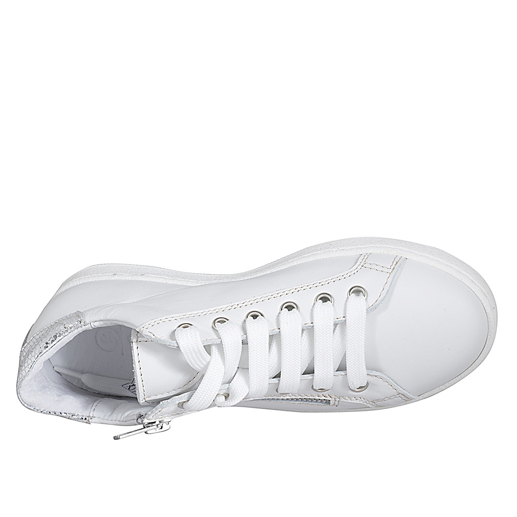 Woman's laced shoe with removable insole and zipper in white and silver laminated leather wedge heel 2 - Available sizes:  32, 33