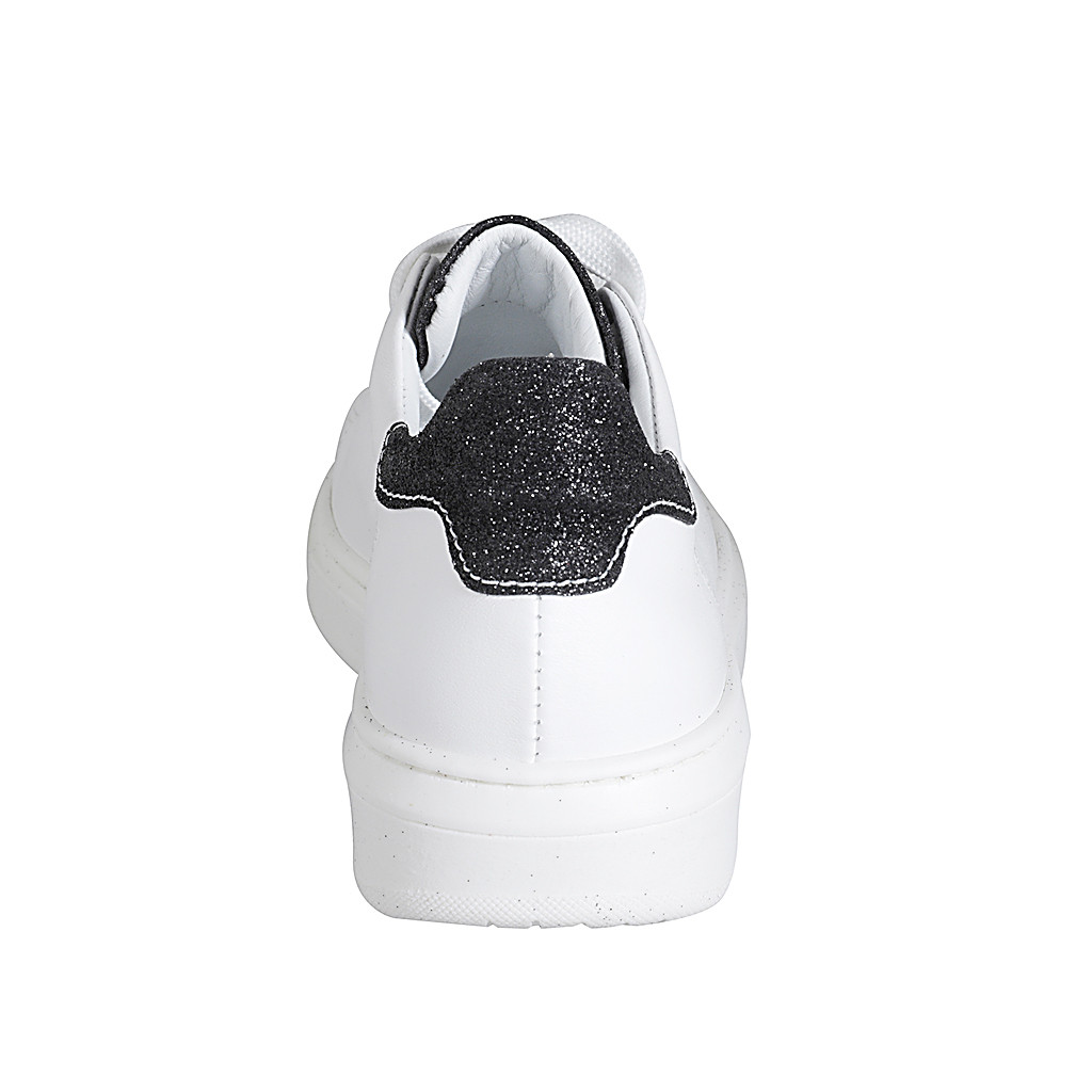 Woman's laced shoe with removable insole in white and black glittered leather wedge heel 3 - Available sizes:  32, 35