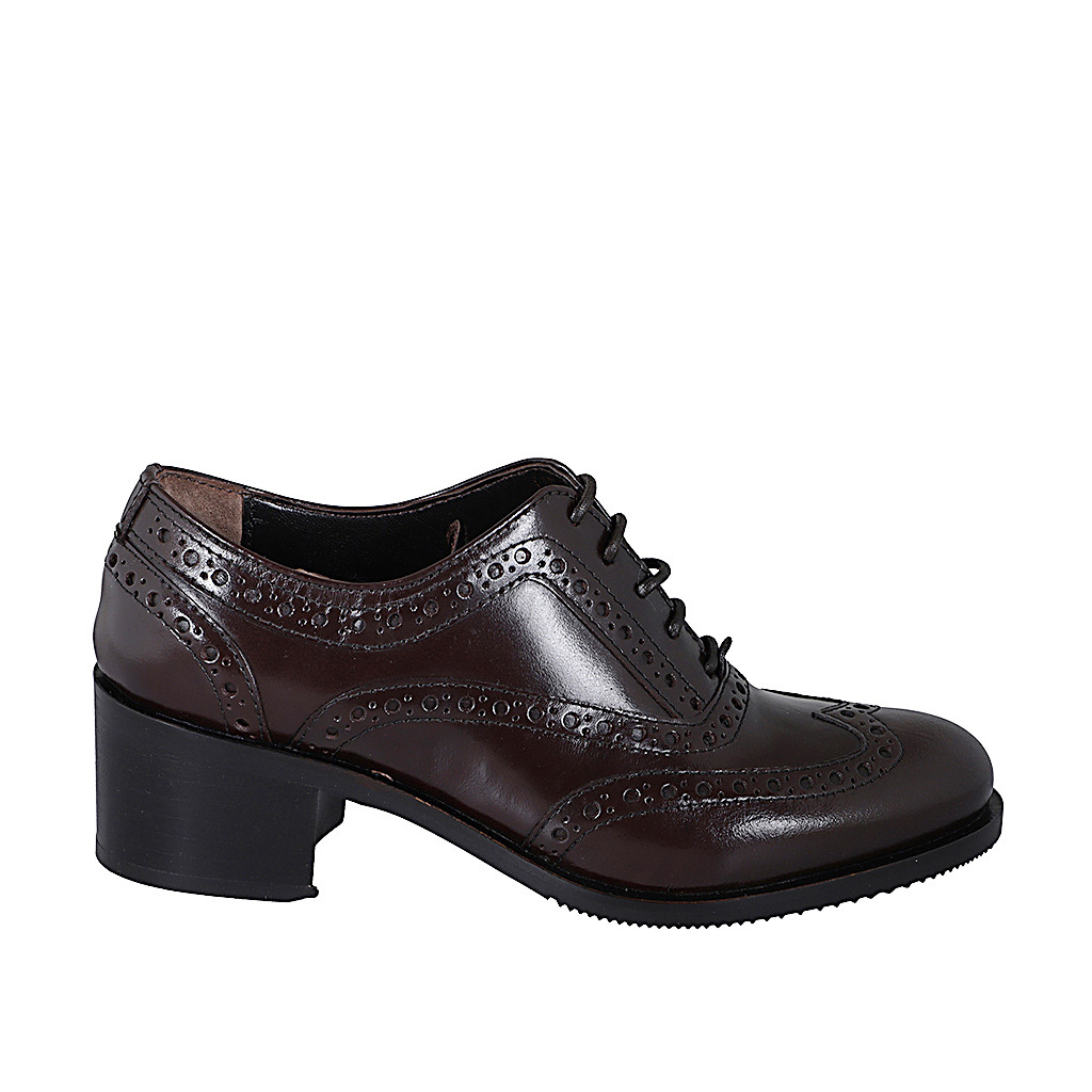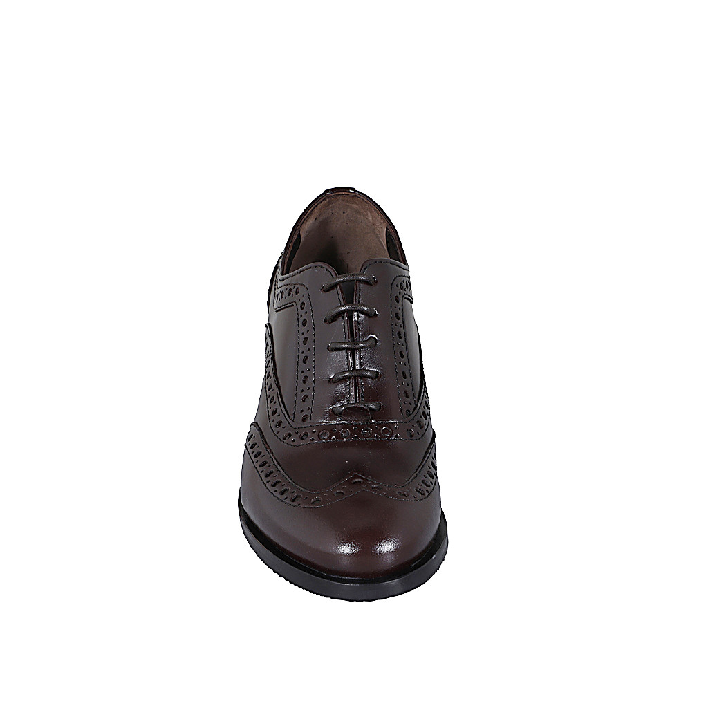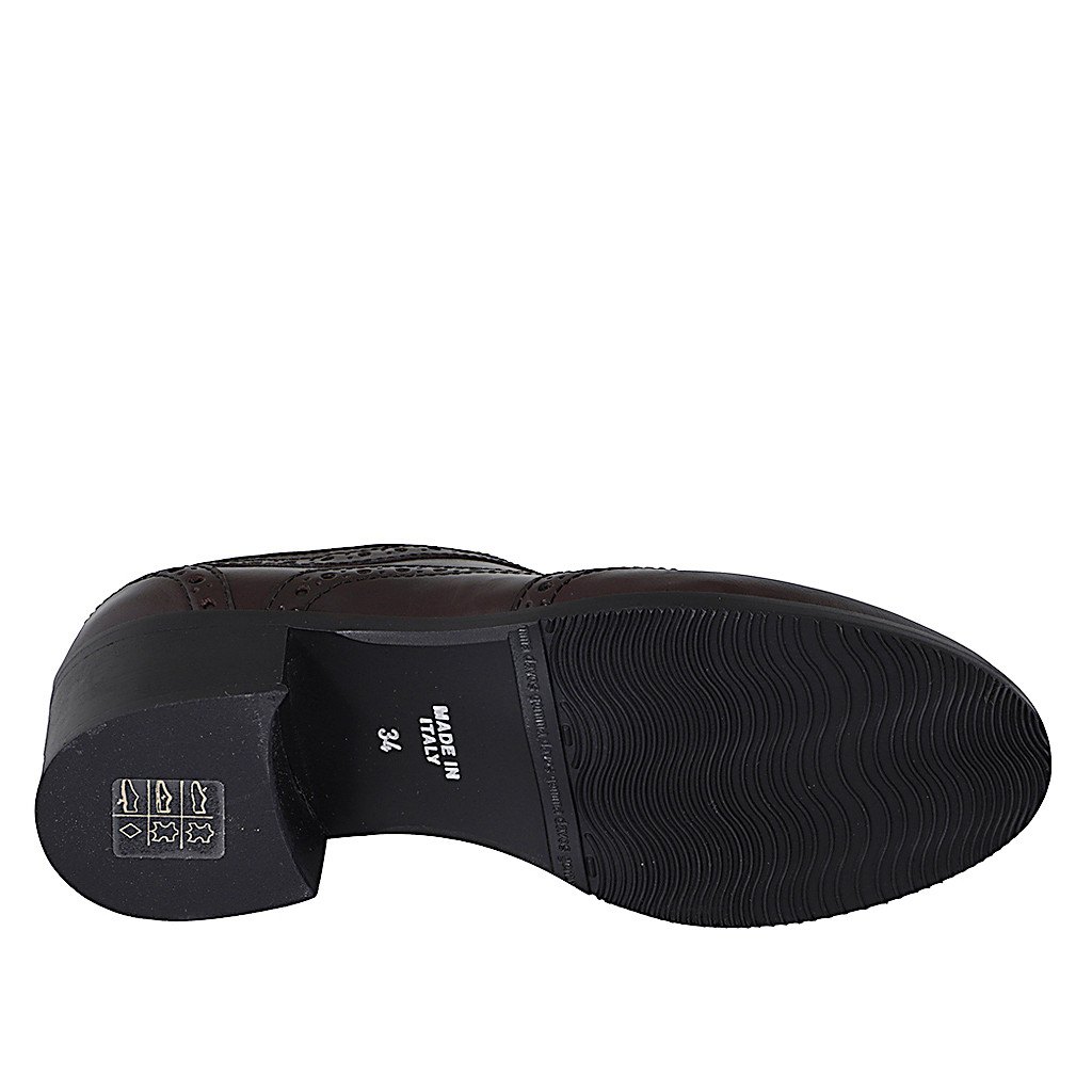 Woman's sandal with glittered elastic band and velcro strap in coppery brown laminated leather wedge heel 5