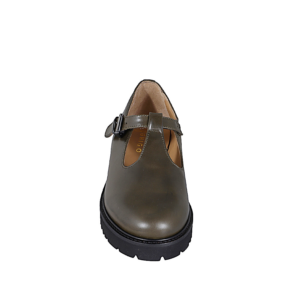Women's closed Mary Jane shoe with T-strap in green leather heel 4