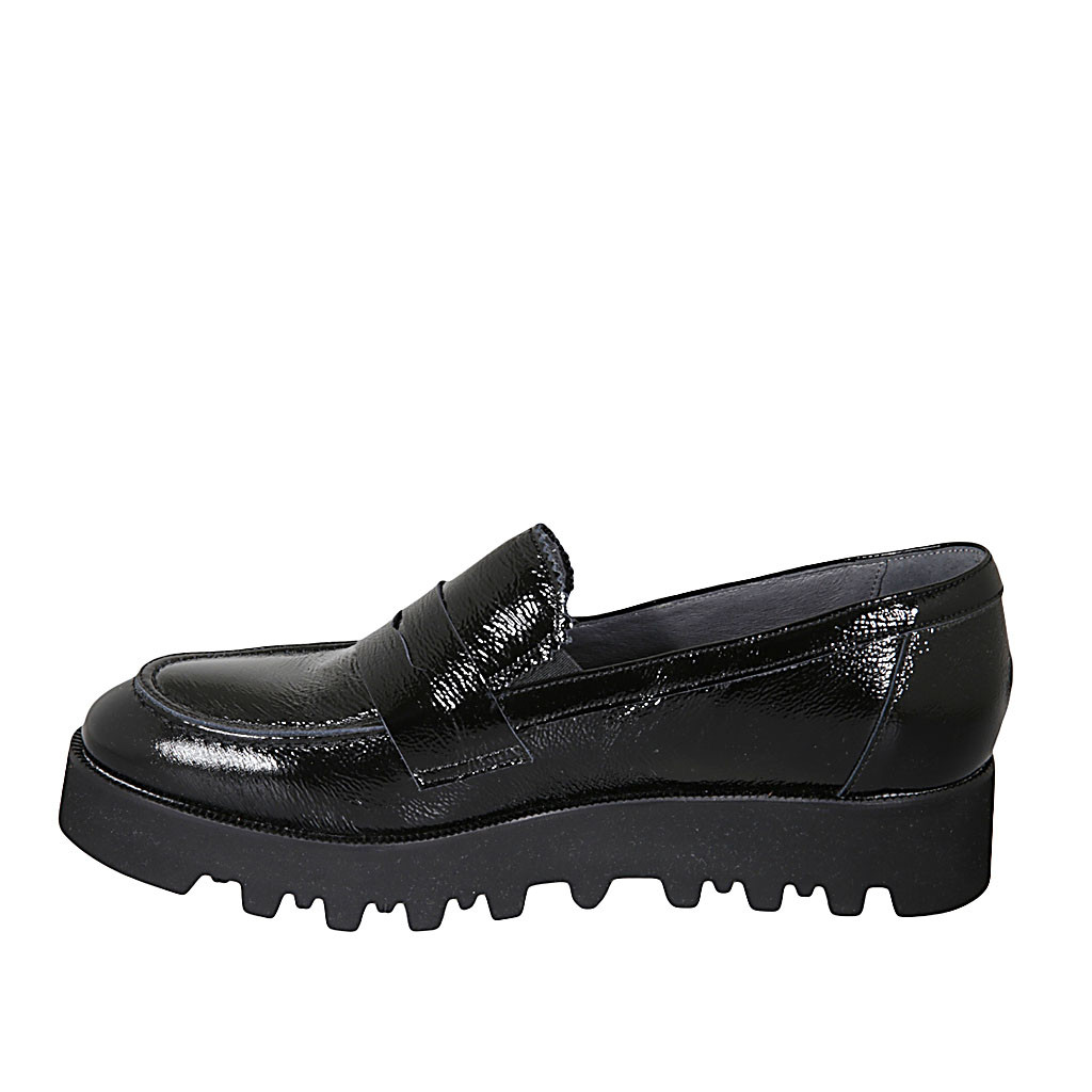 Woman's loafer in black patent leather wedge heel 4 - Available sizes:  43, 44