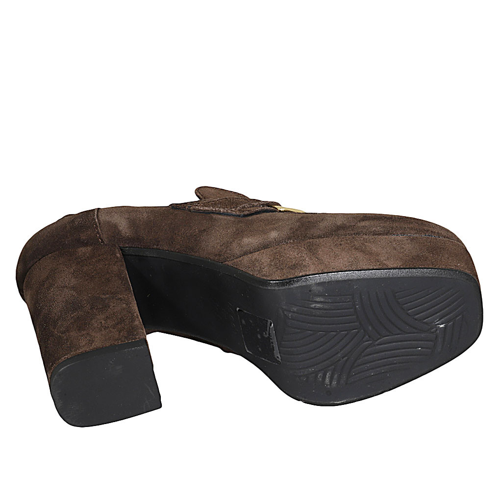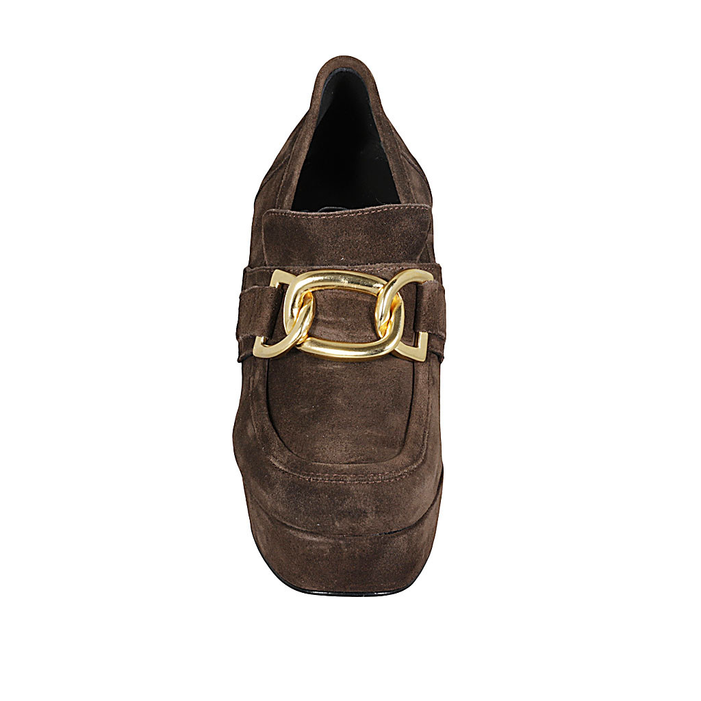 Woman's mocassin with platform and chain in brown suede heel 9 - Available sizes:  34, 42