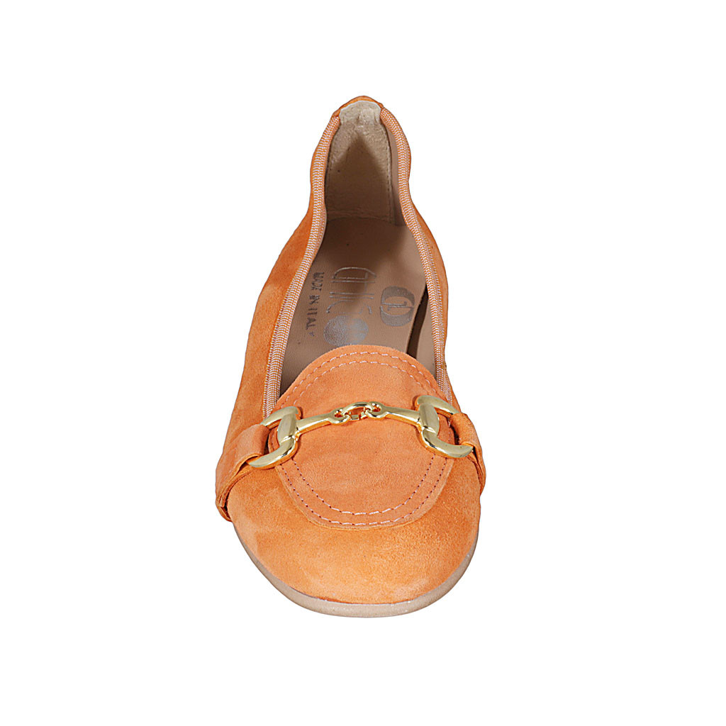 Woman's mocassin with accessory in orange suede heel 2 - Available sizes:  43