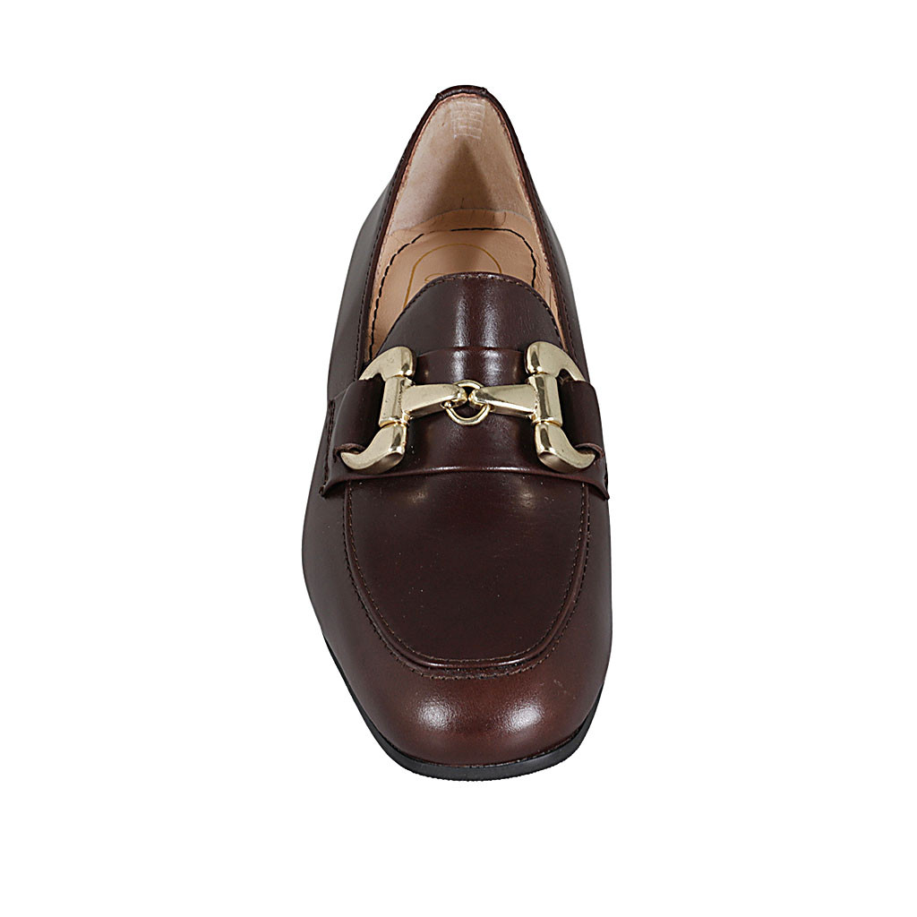 Woman's mocassin with accessory and elastic bands in brown leather heel 5 - Available sizes:  33, 42, 44