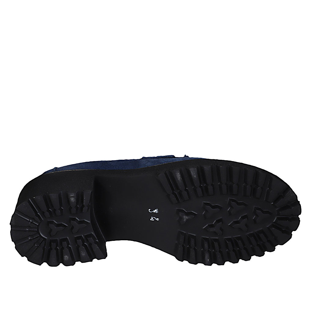 Woman's strap sandal in blue patent leather with platform and wedge heel 7