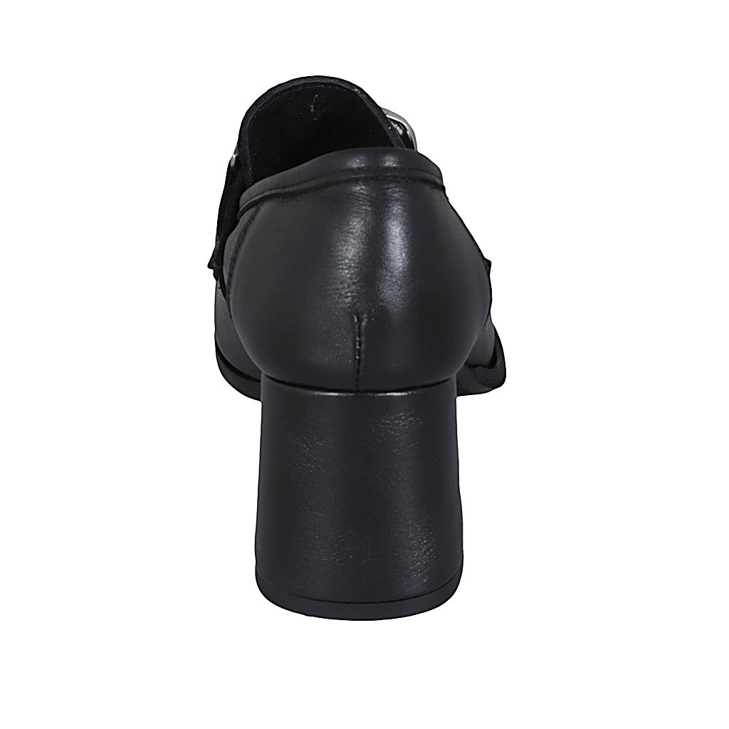 Woman's ankle boot in black leather with elastic bands heel 3