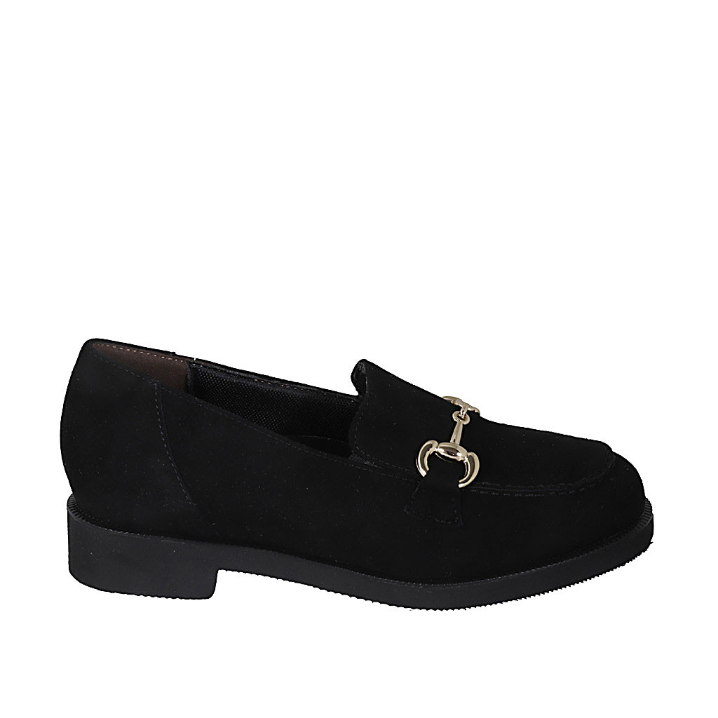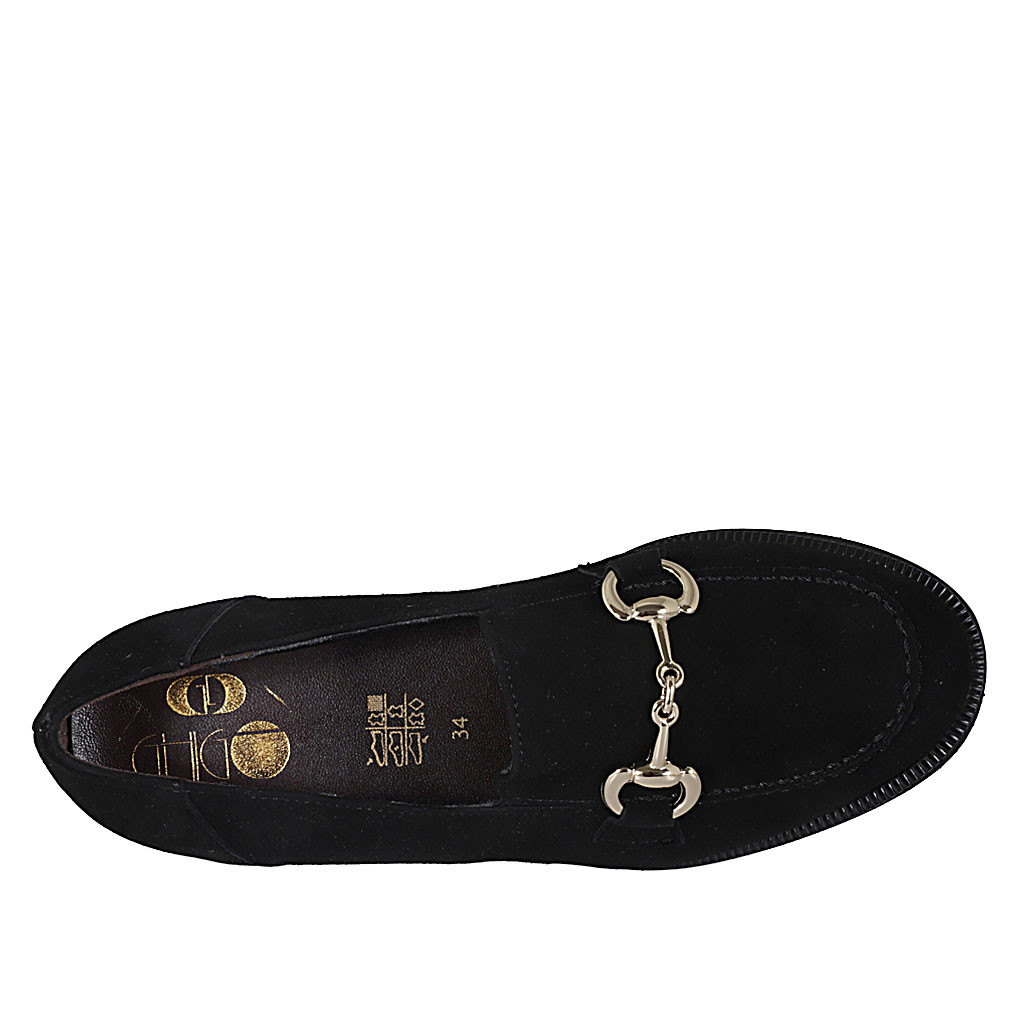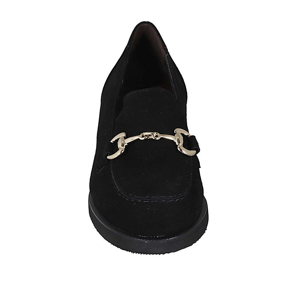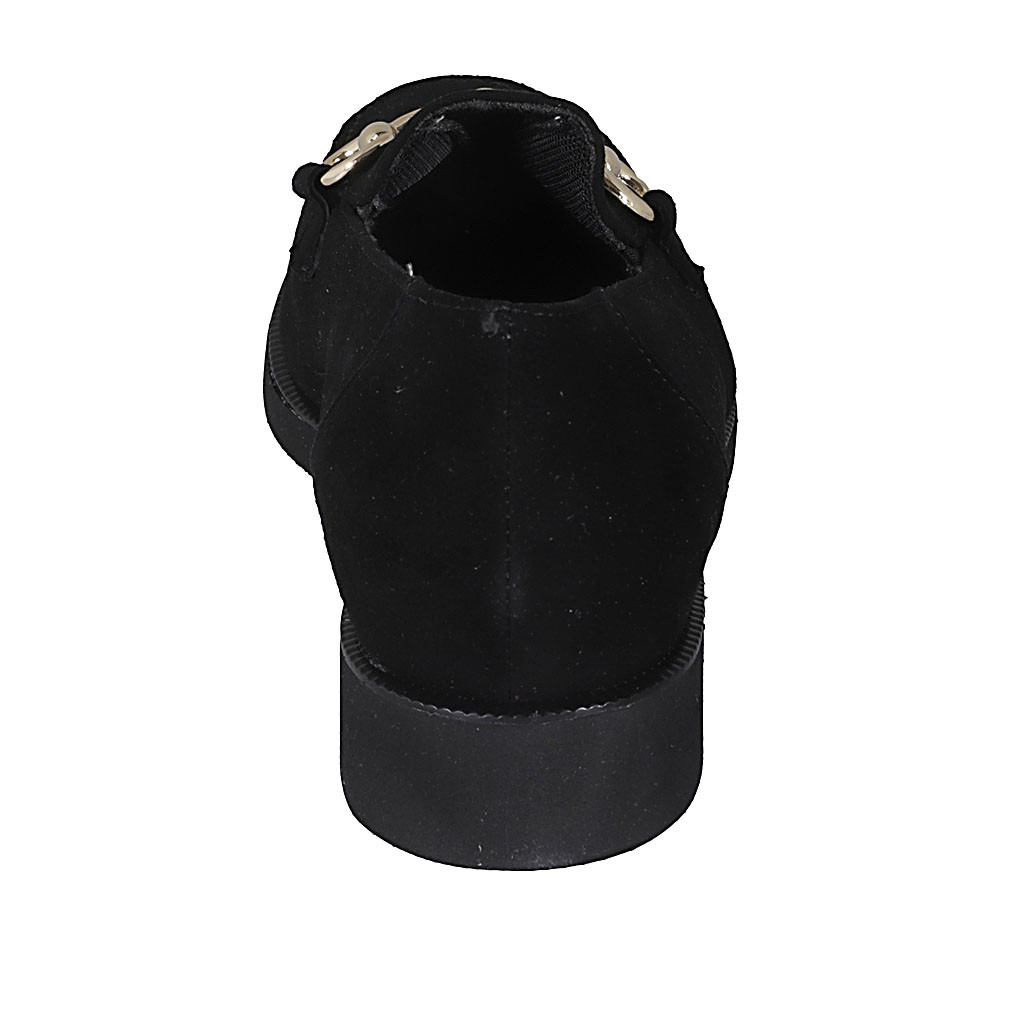 Woman's mocassin with chain and elastic band in black suede heel 4