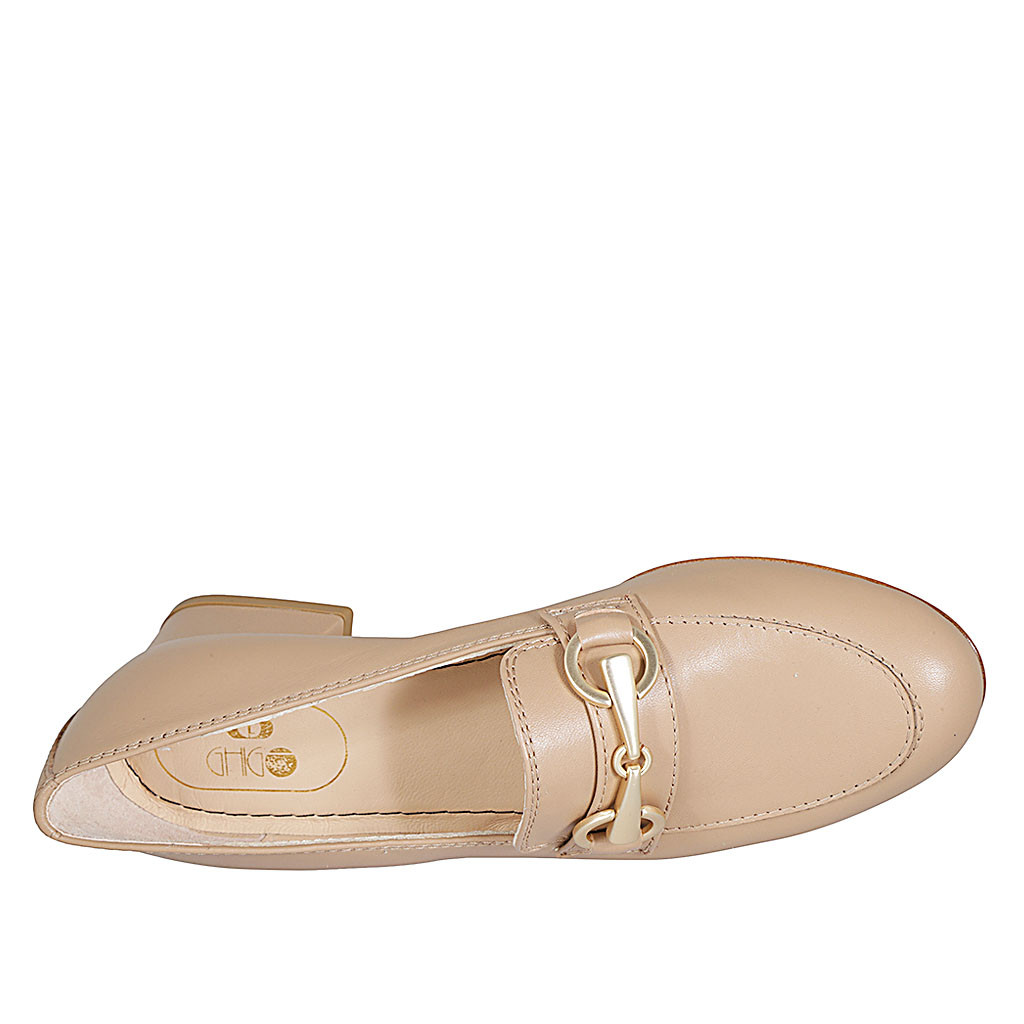Woman's mocassin in rose leather with accessory heel 4 - Available sizes:  43, 44