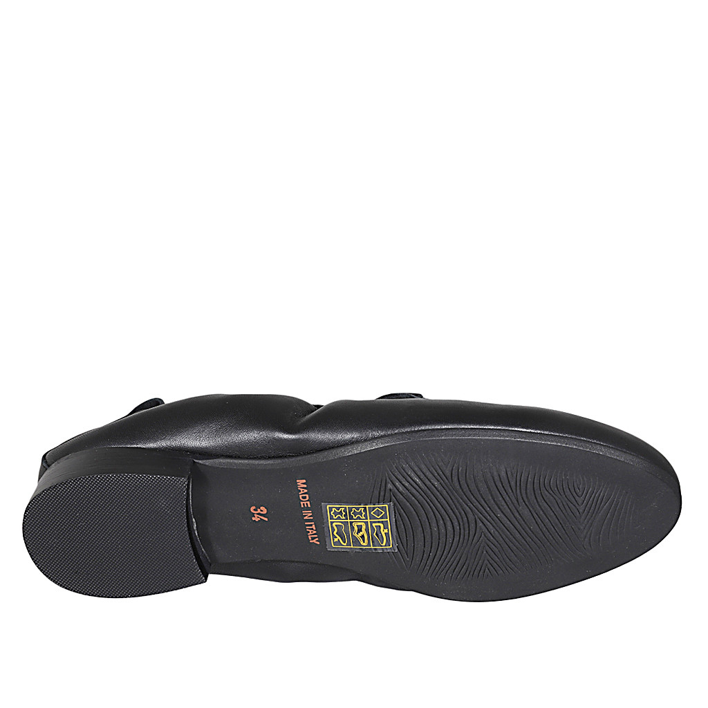 Woman's boot with half zipper in black leather and pierced leather heel 6
