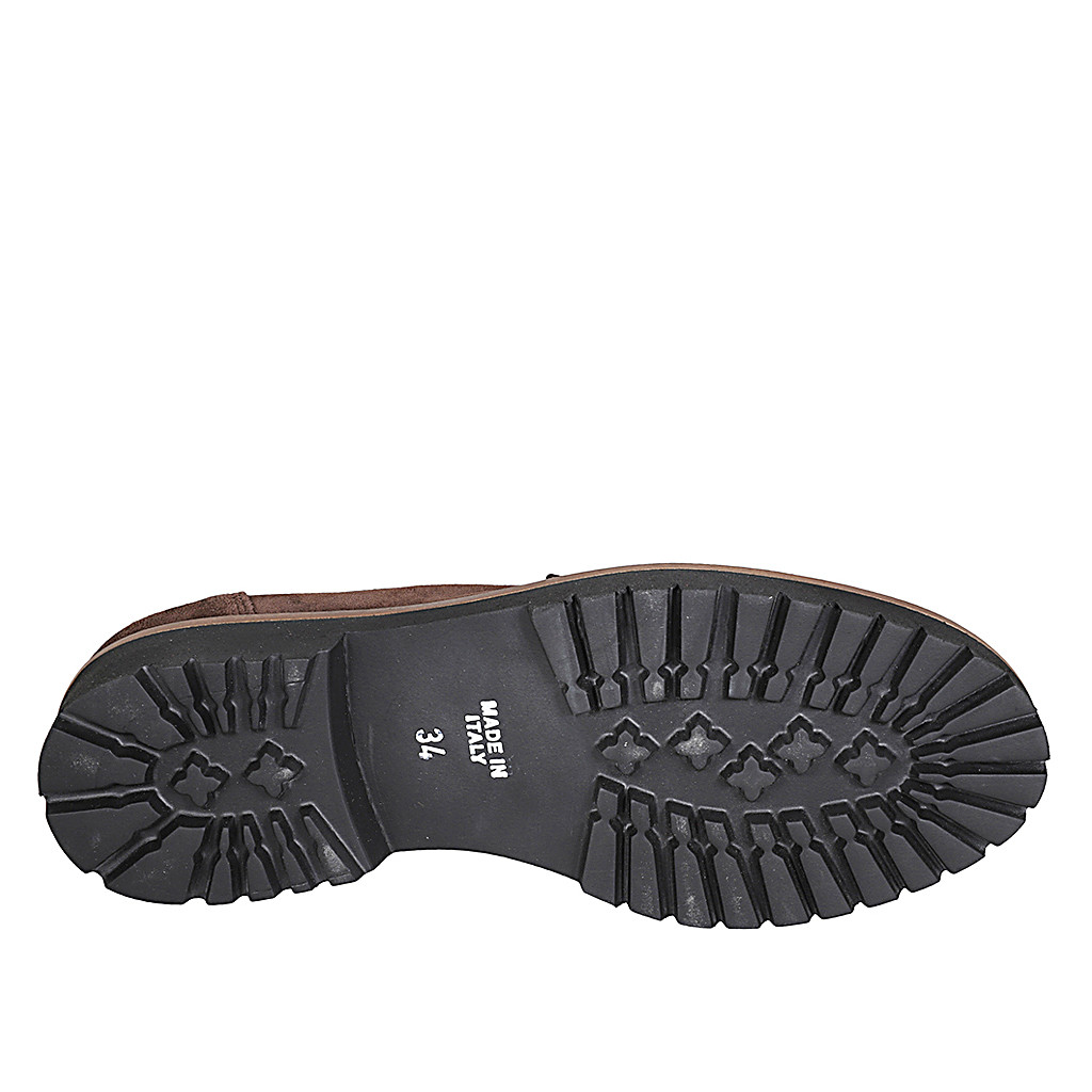 Woman's ballerina shoe in red suede with removable rhinestone clip-on wedge heel 3