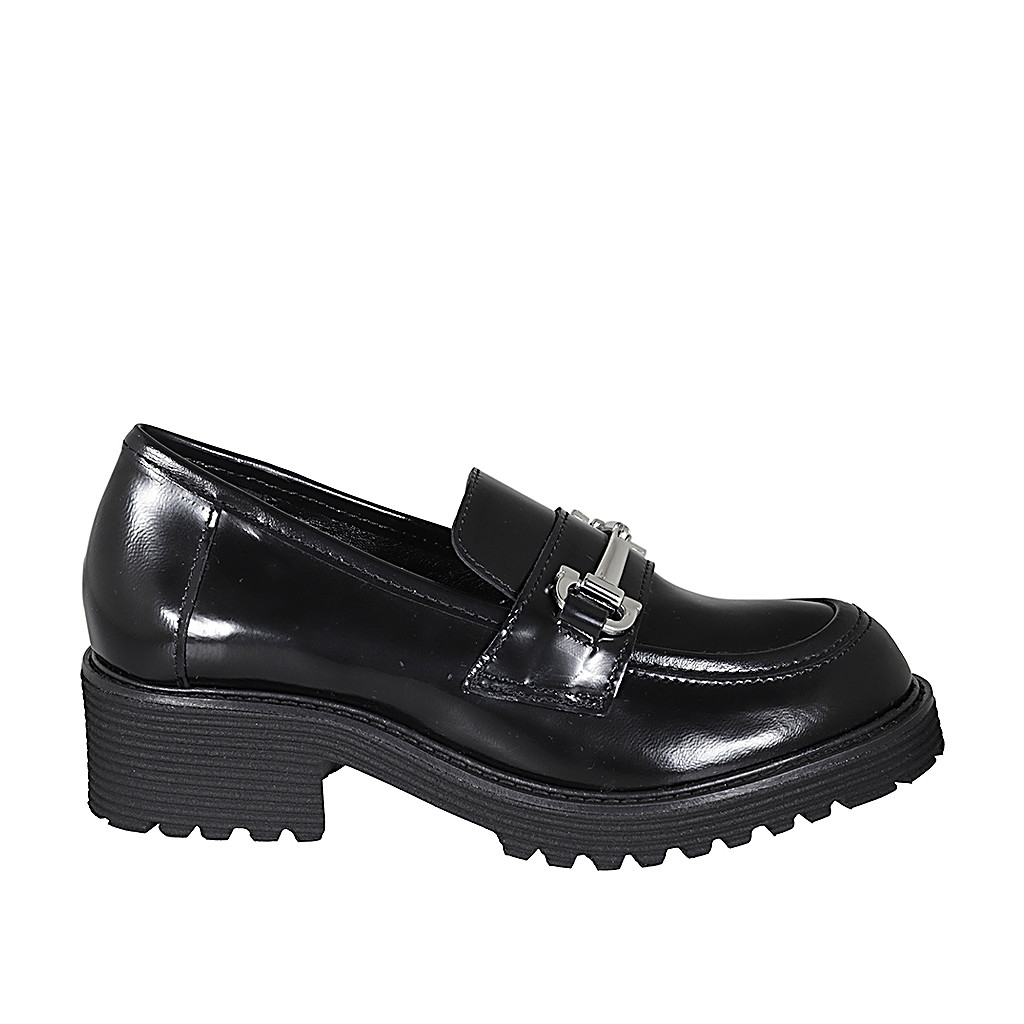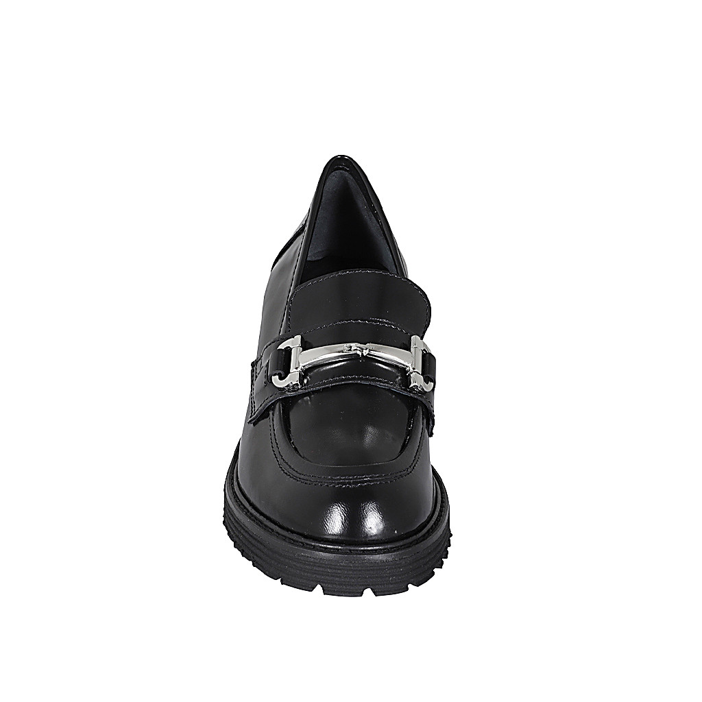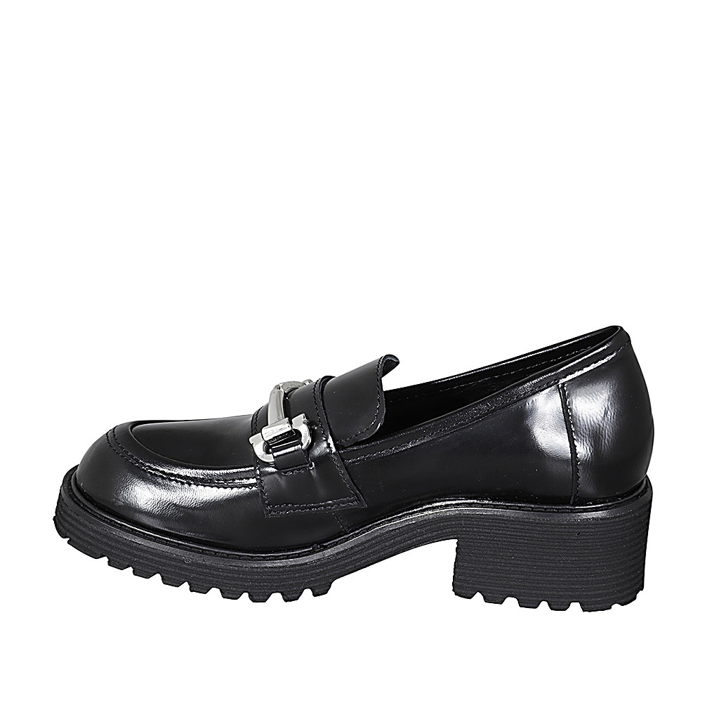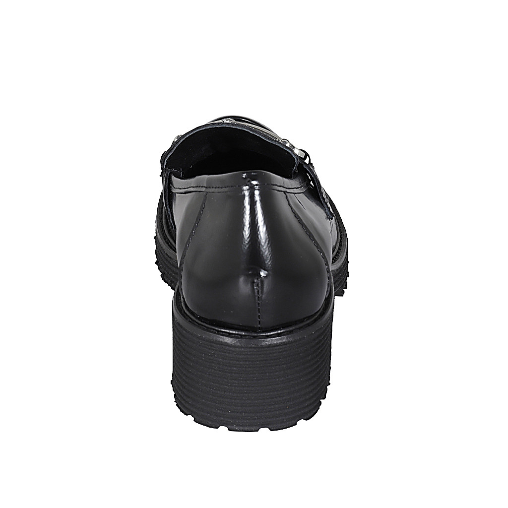Woman's mocassin in black brush-off leather with accessory heel 5 - Available sizes:  45