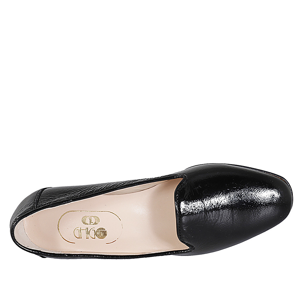 Woman's loafer in black patent leather heel 2 - Available sizes:  32, 33, 42