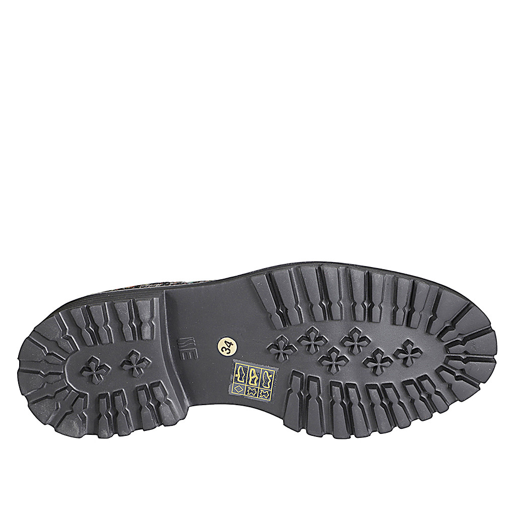 Woman's laced derby shoe in black brush-off leather with Brogue pattern heel 3