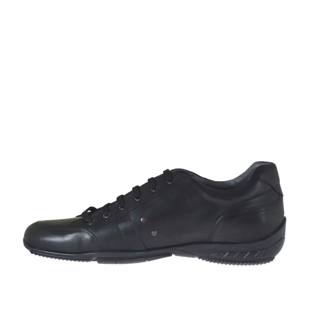 Men's laced sports shoe with studs in black leather - Available sizes:  47