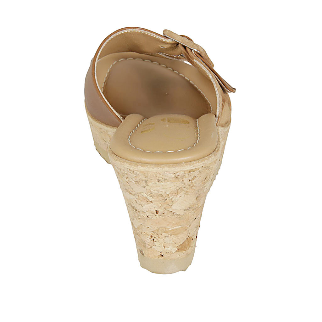 Woman's open shoe with strap in platinum laminated printed leather heel 8