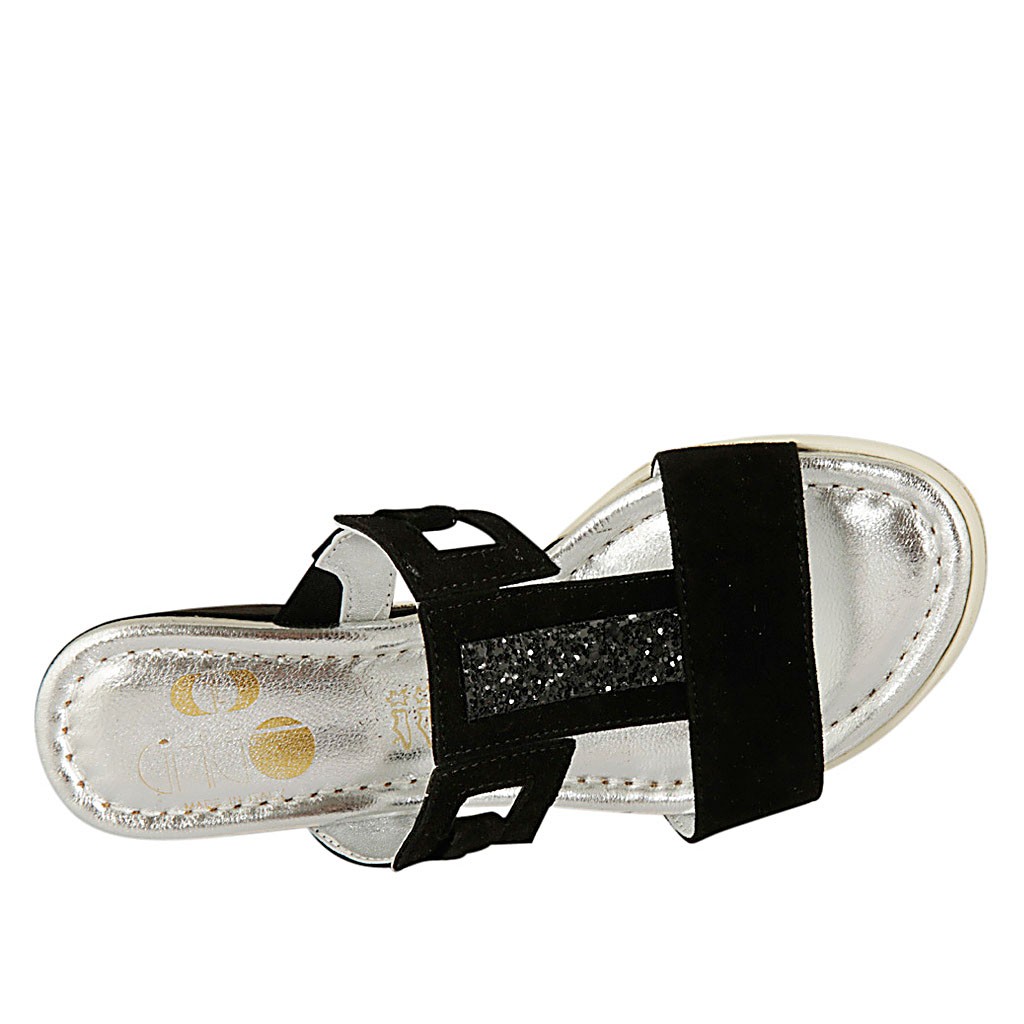 Woman's pointy ankle boot with zipper in glittered printed grey suede heel 7