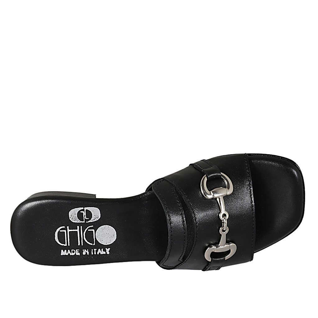 Woman's open mules with accessory in black leather heel 2 - Available sizes:  32, 42