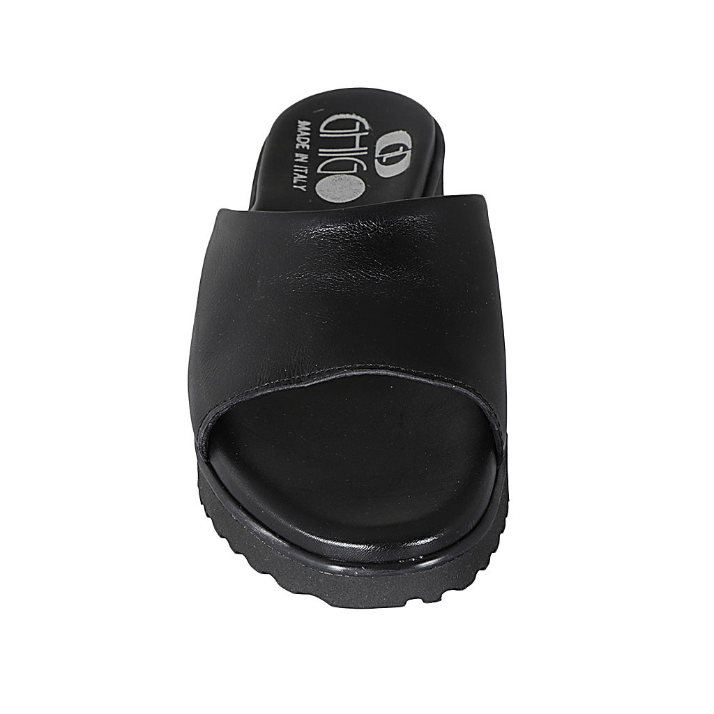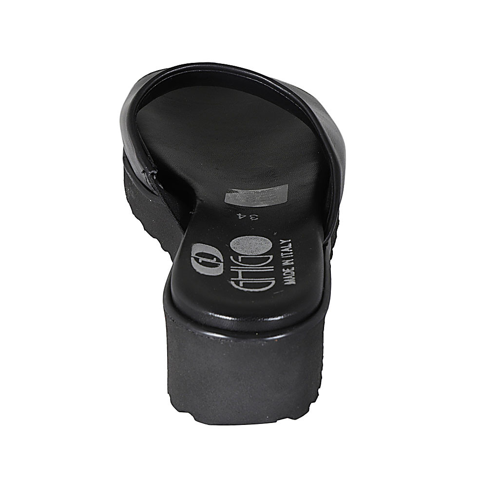 Woman's mule with elastic band in black leather wedge heel 4 - Available sizes:  43