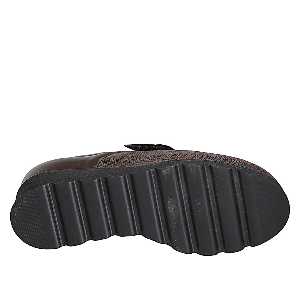 Woman's loafer shoes with metallic accessory in black suede and herringbone fabric heel 5