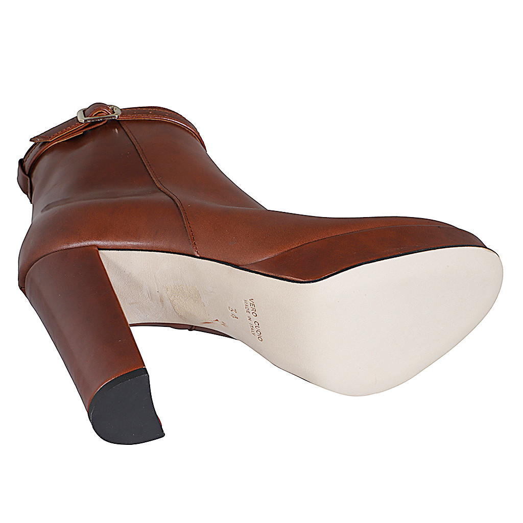 Woman's ankle boot in black leather with zipper and buckle heel 5