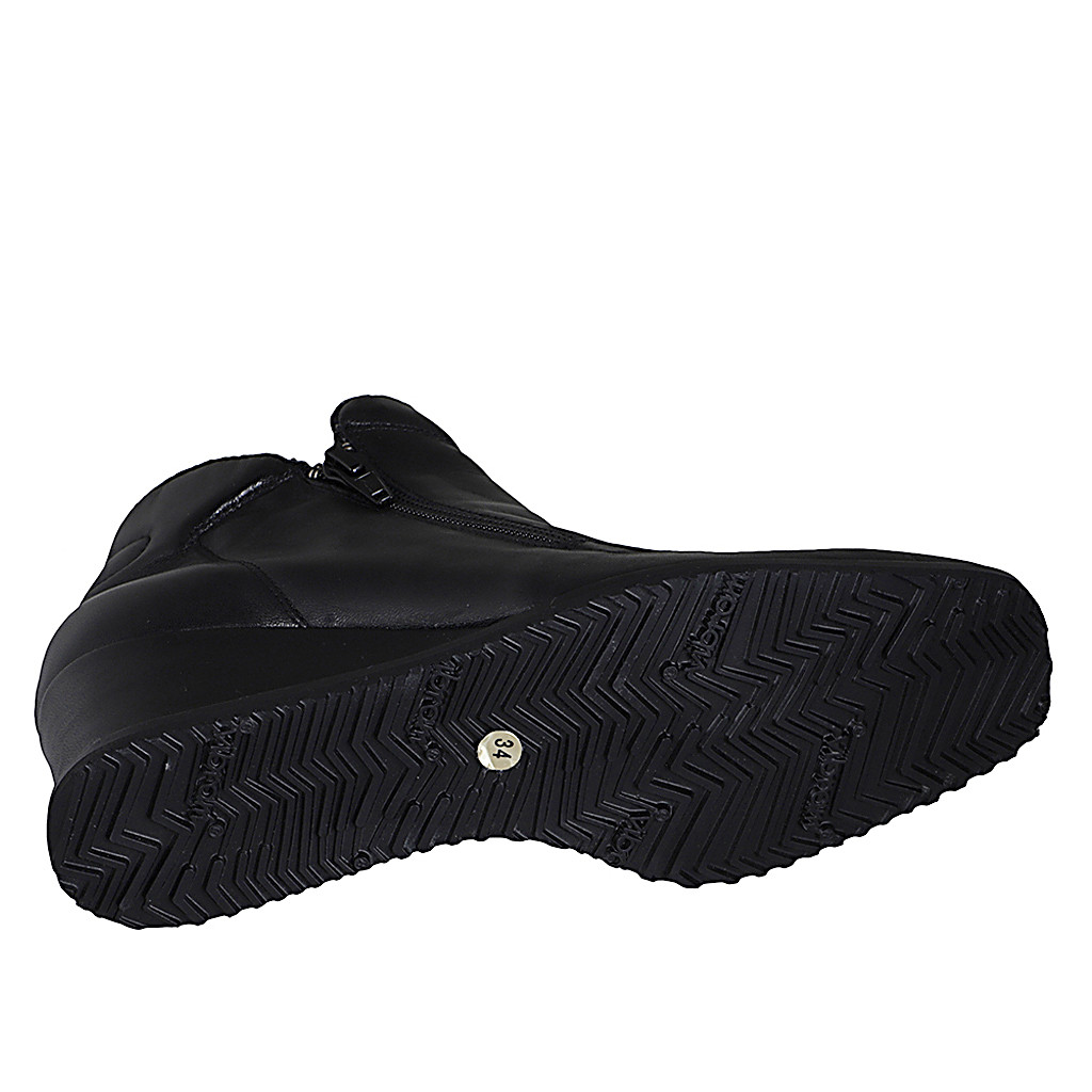 Woman's ankle boot in black leather with zippers wedge heel 6