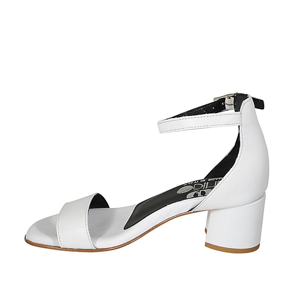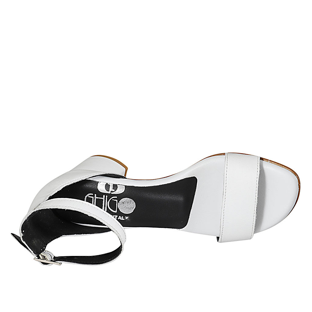 Woman's pointy open shoe with straps in light blue leather heel 7
