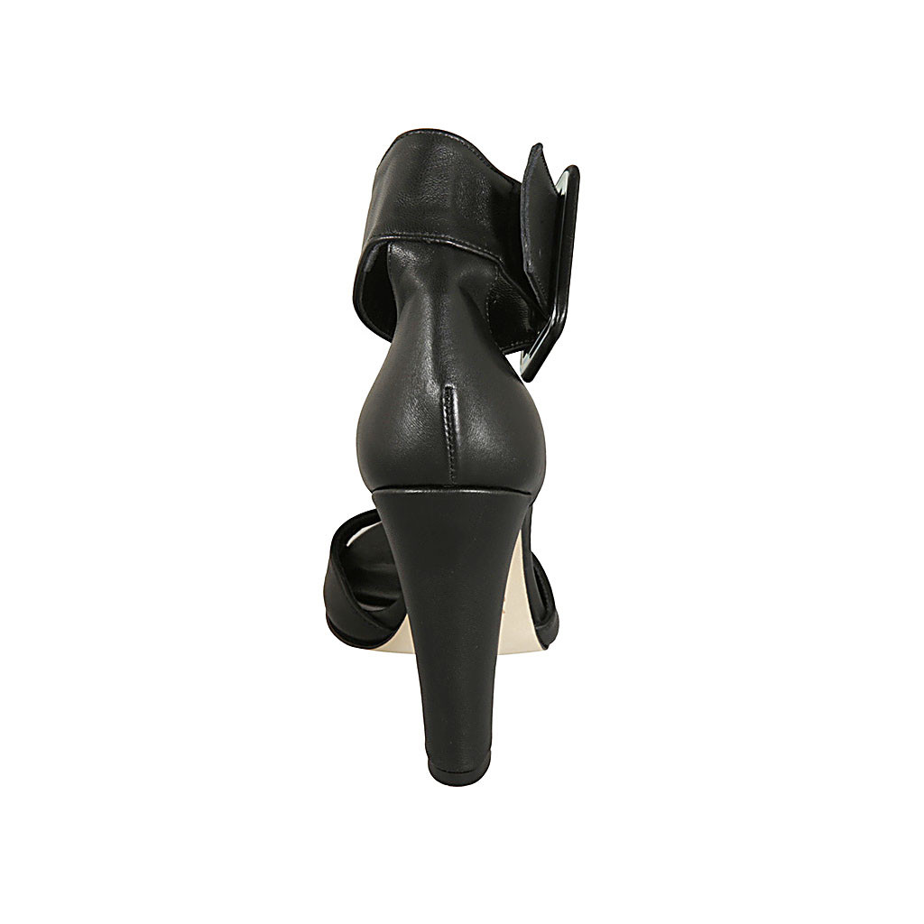 Woman's open shoe with ankle buckle in black leather heel 11 - Available sizes:  42