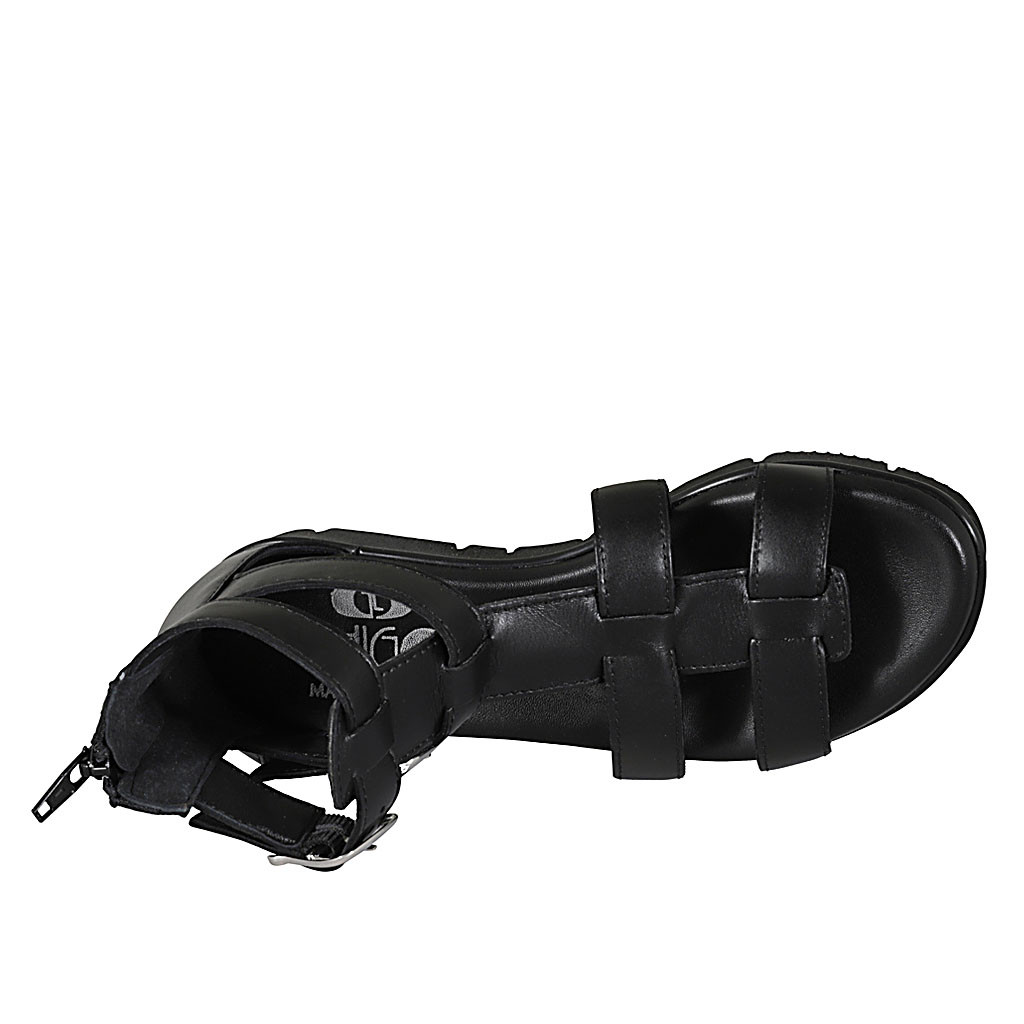 Woman's open shoe with zipper and buckles in black leather wedge heel 3 - Available sizes:  32