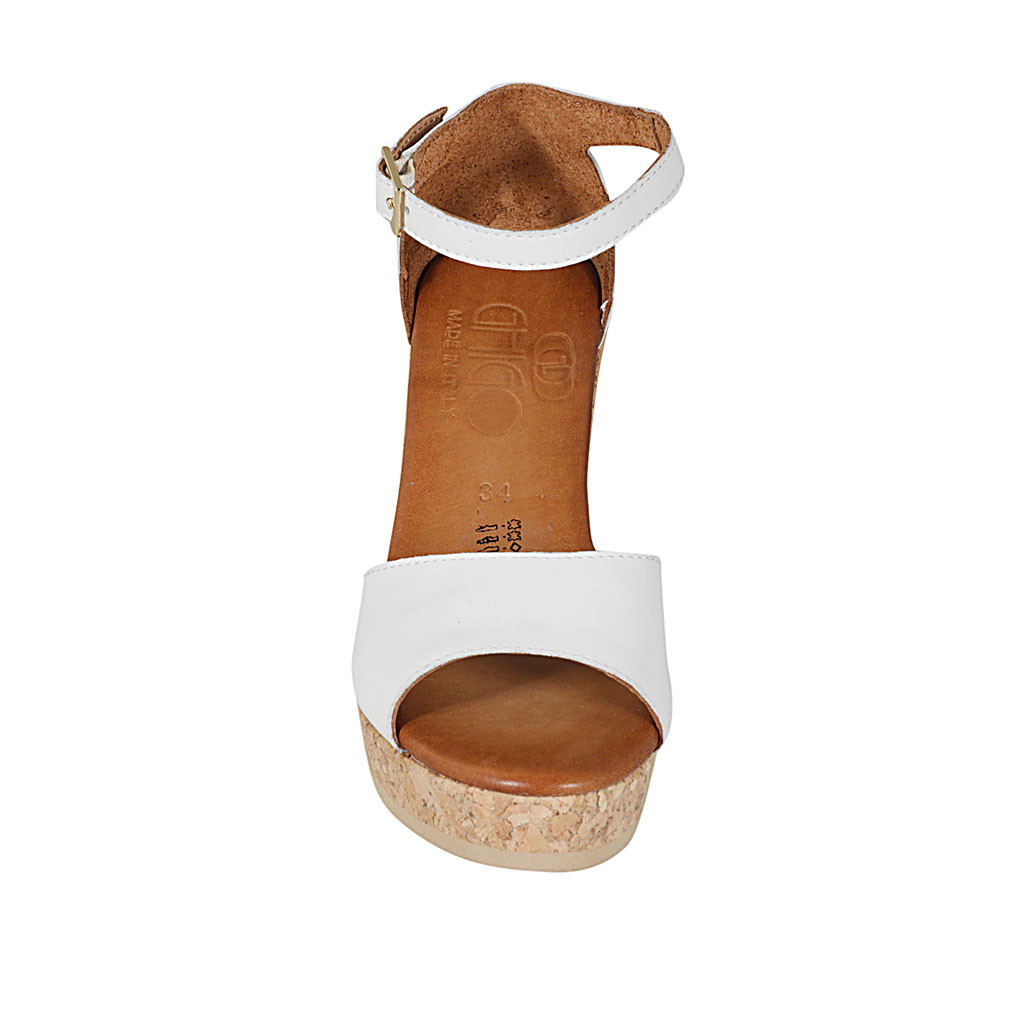 Woman's open shoe with strap in platinum laminated leather heel 7