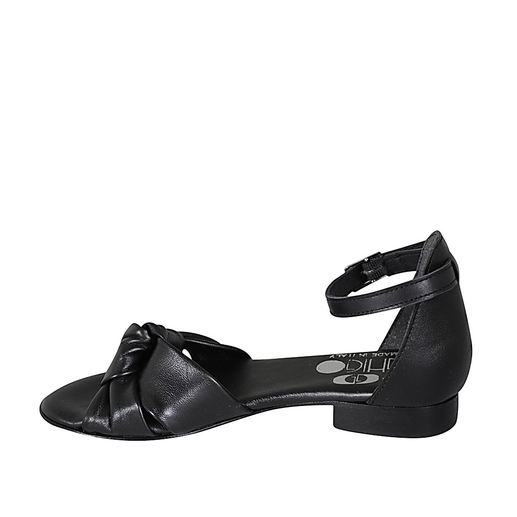 Woman's open shoe with strap and knot in black leather heel 2 - Available sizes:  32