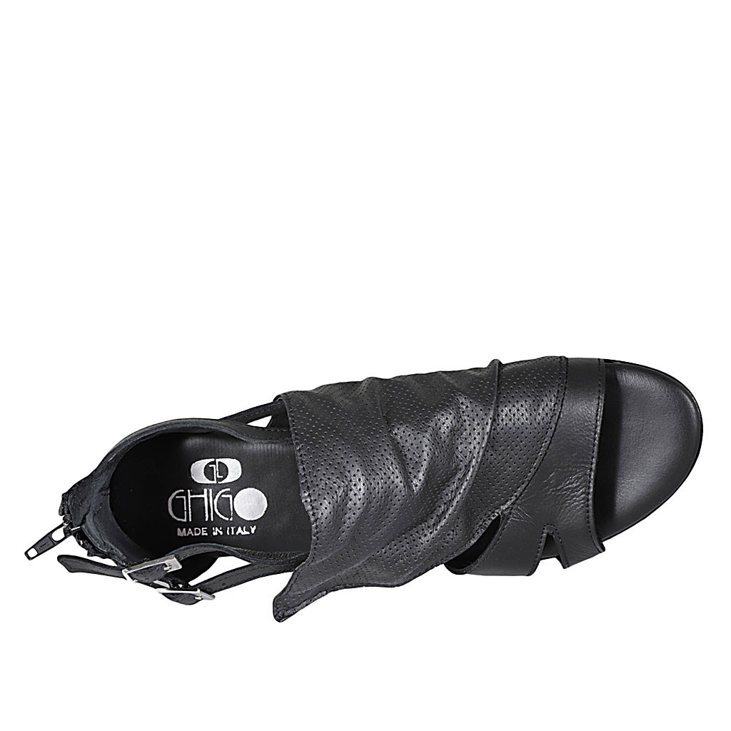 Woman's pump with removable insole, bow and captoe in black leather and suede heel 3