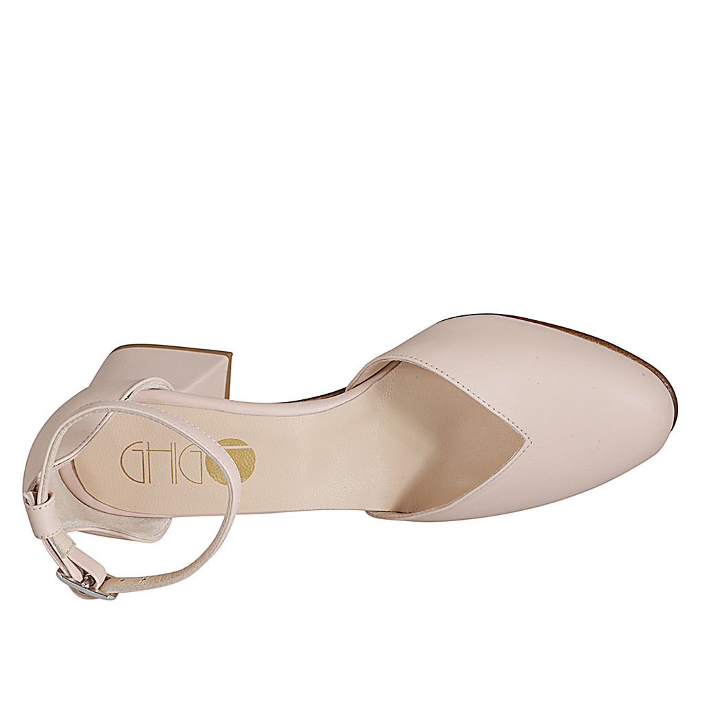 Woman's rounded open shoe with strap in light pink leather heel 5