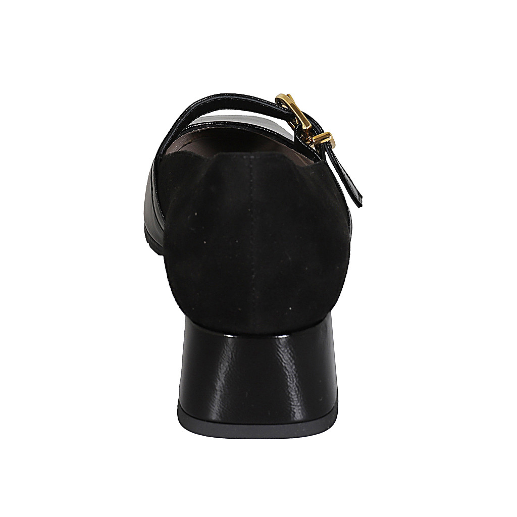 Woman's Mary Jane in black suede and patent leather with strap and heel 4