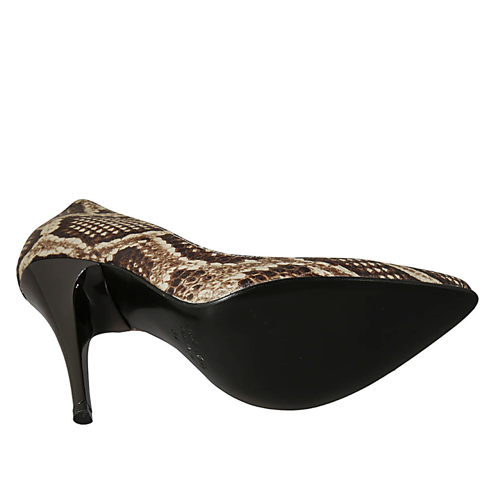 Women's pump shoe in black and white printed leather heel 11