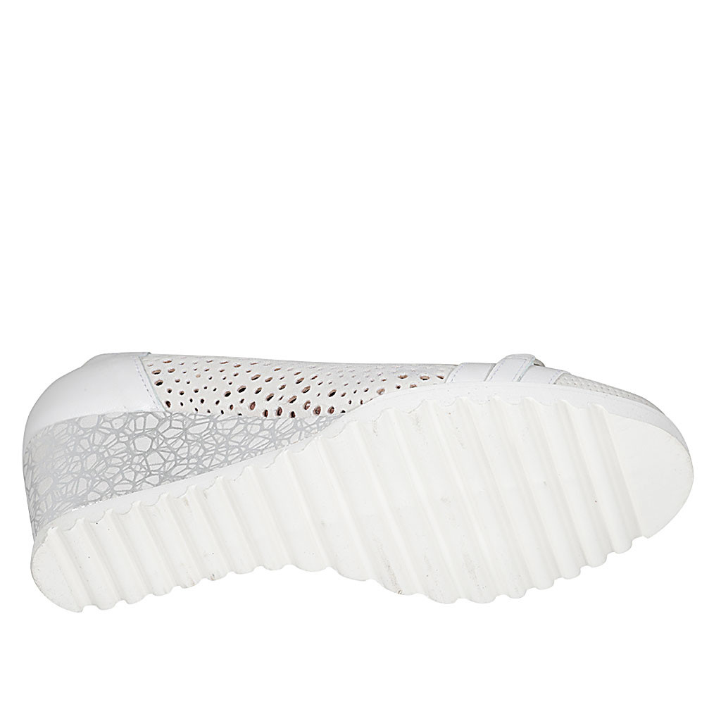 Woman's mules in cognac brown suede and platinum laminated printed suede wedge heel 7