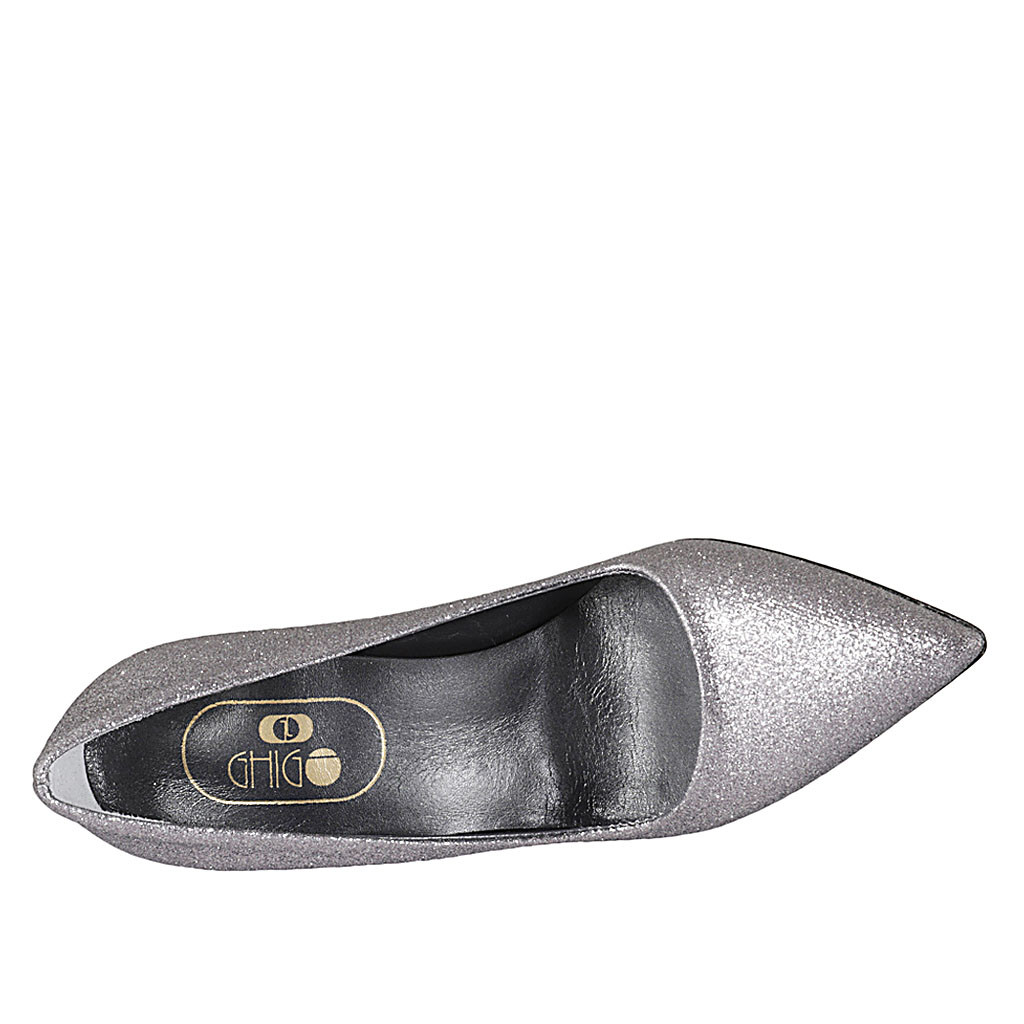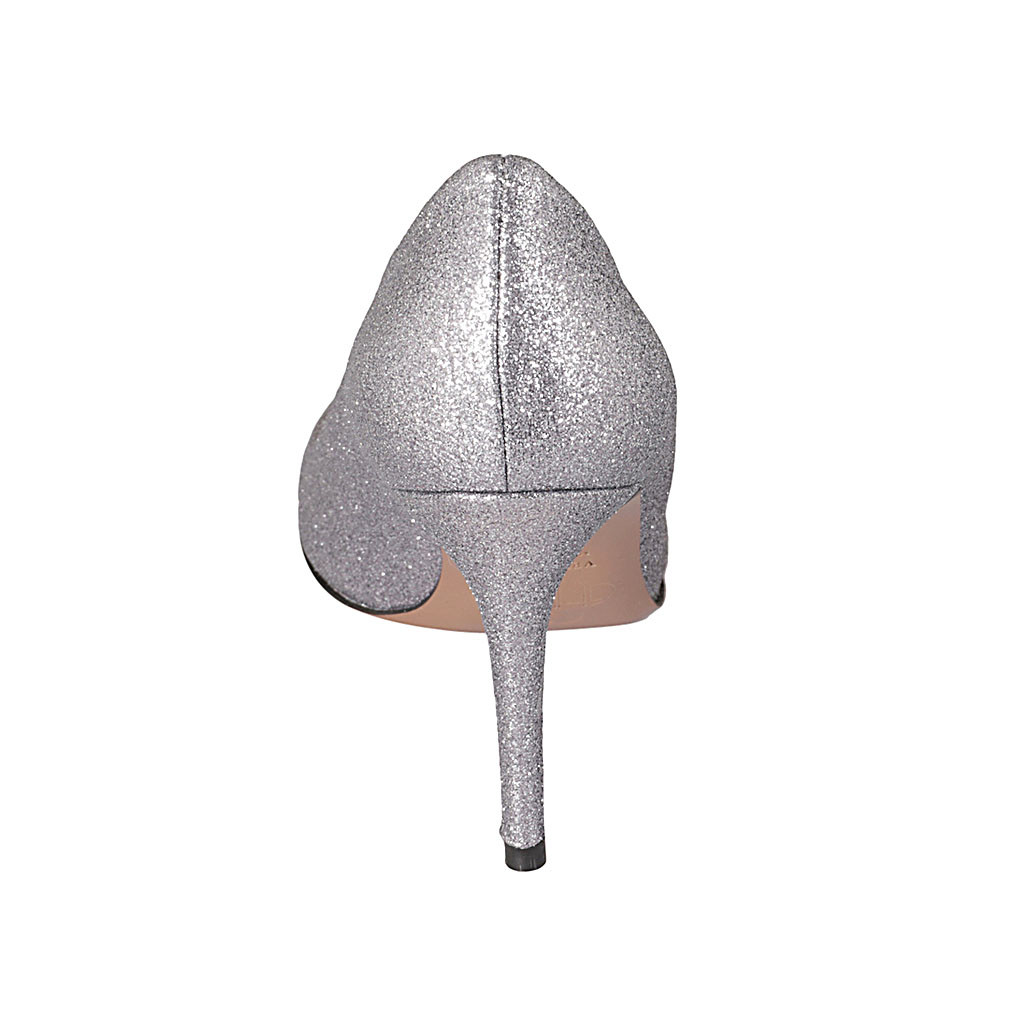 Woman's pump in silver glittered leather heel 8 - Available sizes:  43
