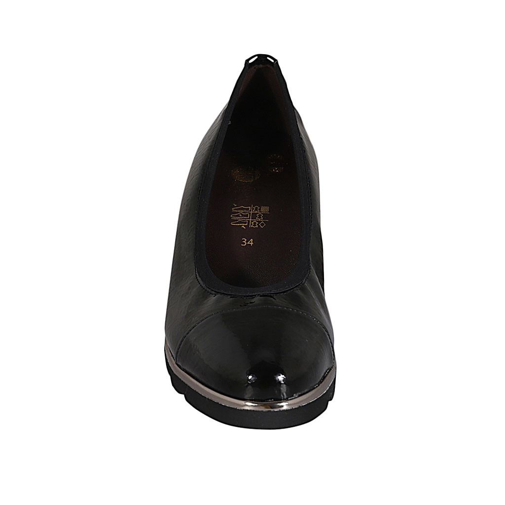Woman's pump with removable insole in black patent leather wedge heel 4 - Available sizes:  31