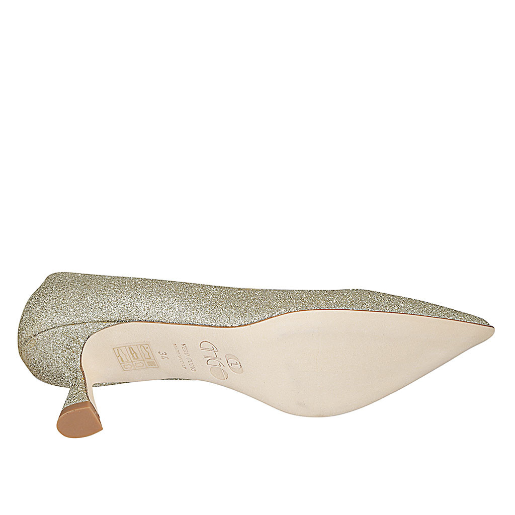 Woman's pointy pump in black suede with accessory and spool heel 6