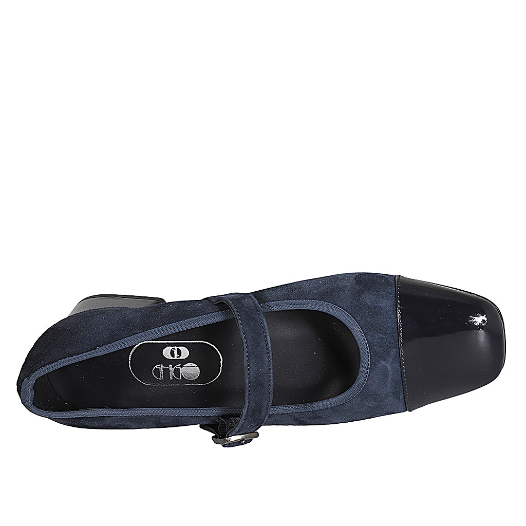 Woman's Mary Jane in blue suede and patent leather with elastic strap heel 4 - Available sizes:  35, 45