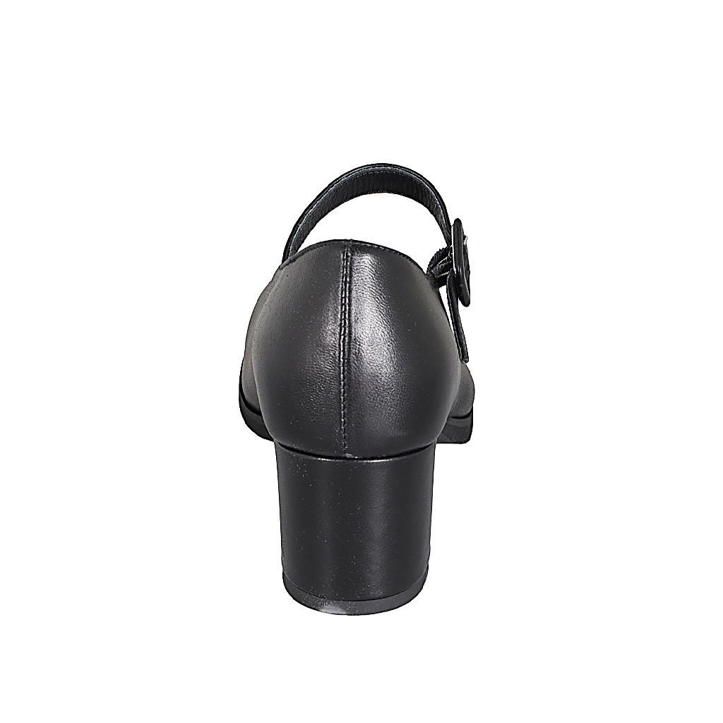 Woman's Mary Jane with strap and removable insole in black leather heel 5