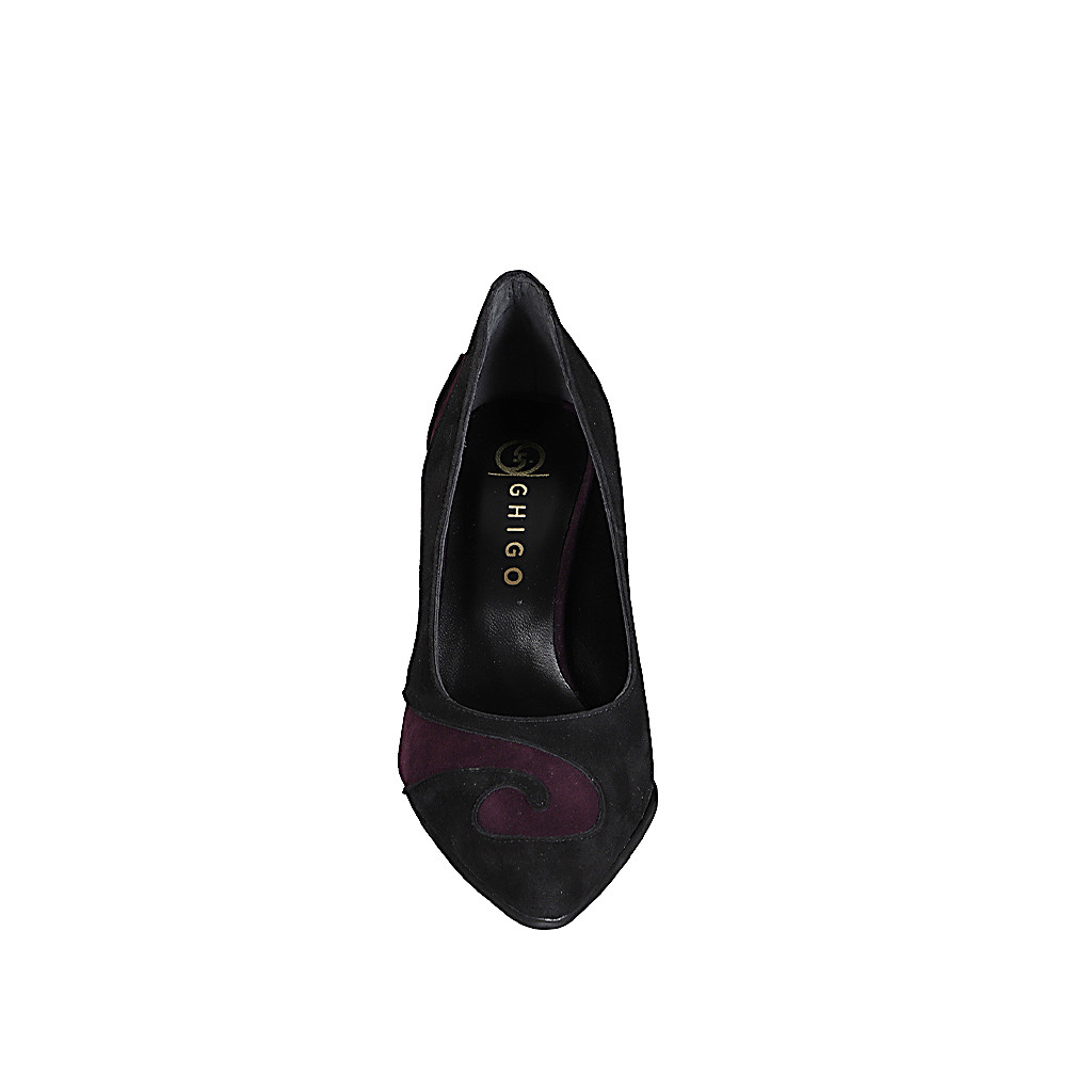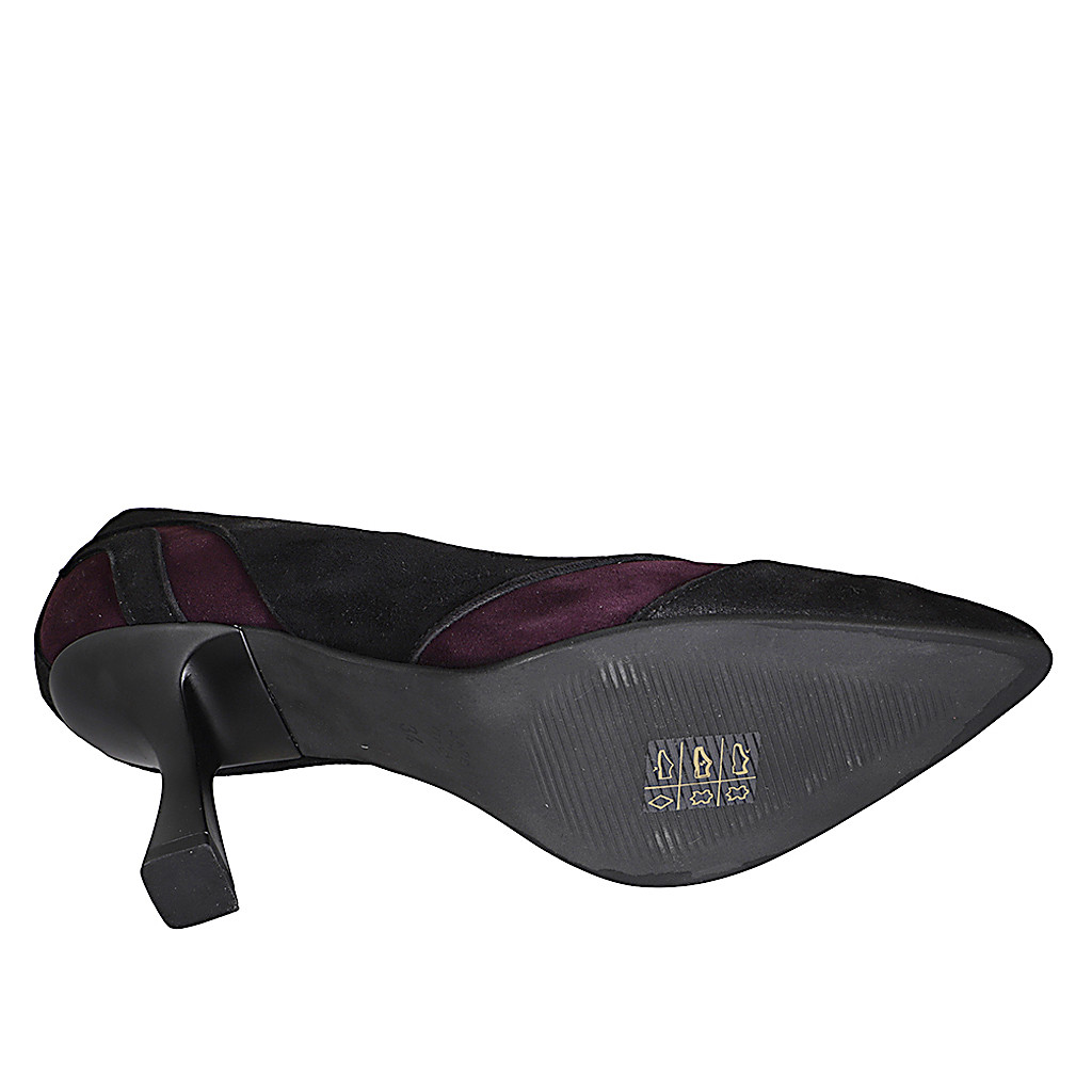 Woman's pointy pump in black and maroon suede spool heel 8 - Available sizes:  32, 33, 34, 35, 42, 43, 44, 45
