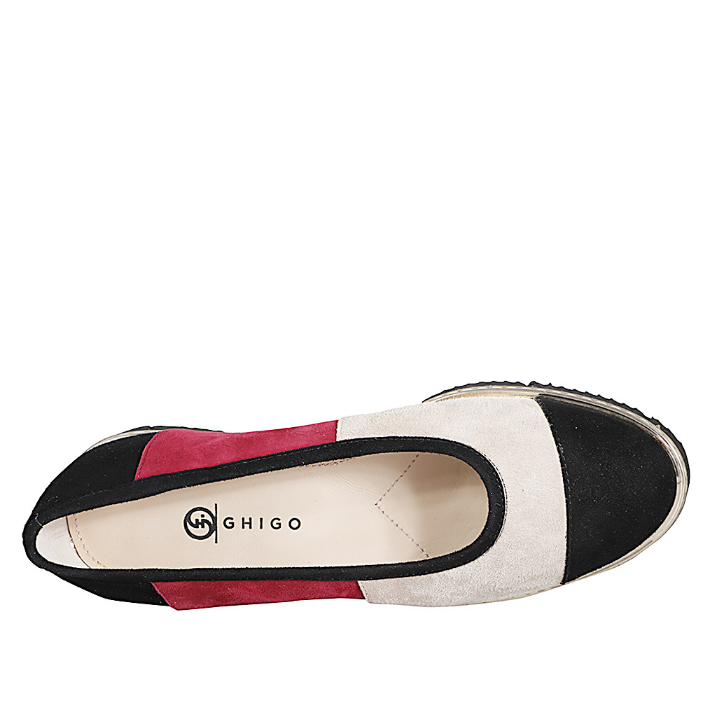 Woman's pump in black, sand beige and maroon suede wedge heel 3